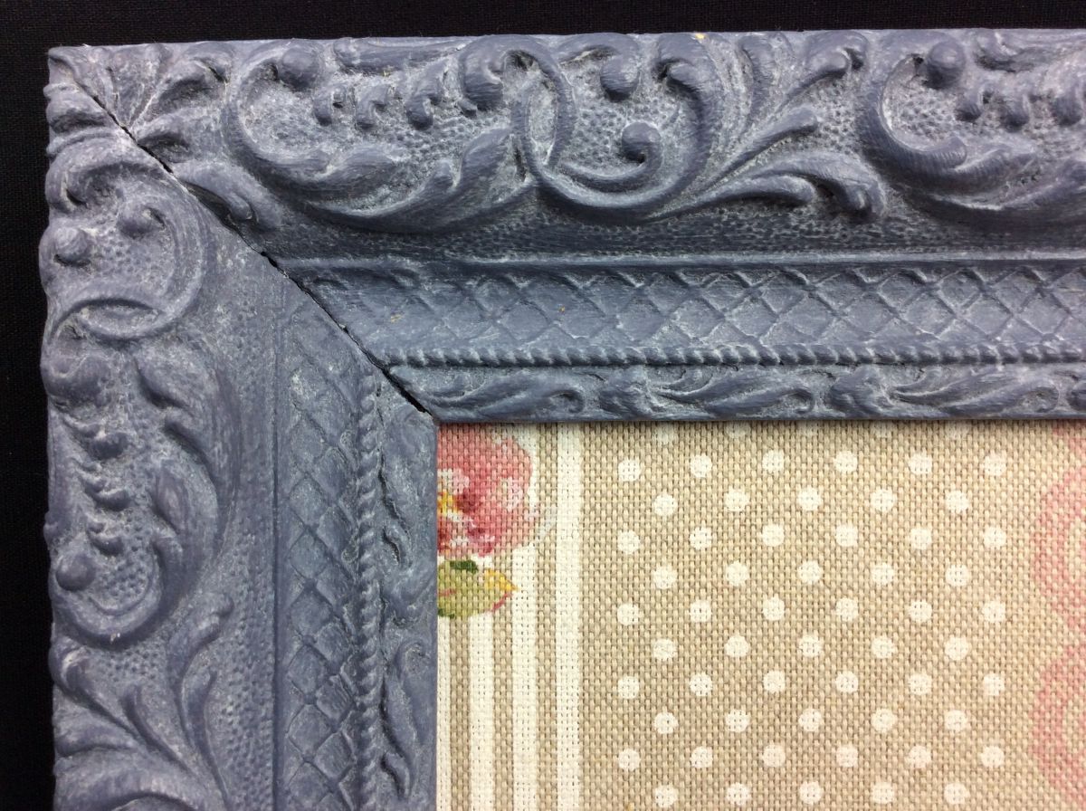 Cadre ancien patiné en Greek bleue et cire blanche.