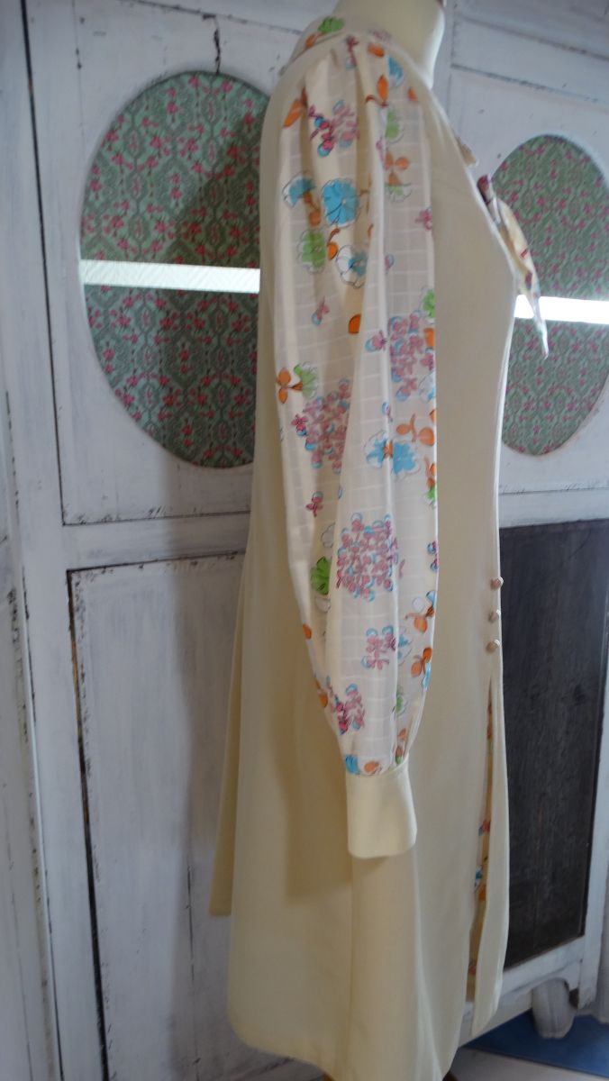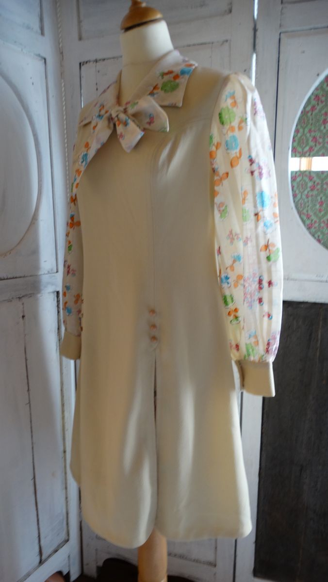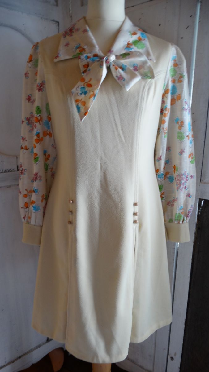 Magnifique robe vintage 1960 / 1970 sixties manches imprimé de fleurs