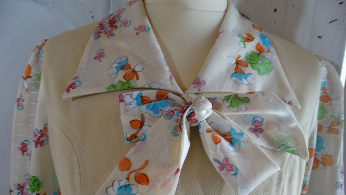 Robe pure Vintage 1960 /1970 chasuble manches longue, col nœud lavallière T 38