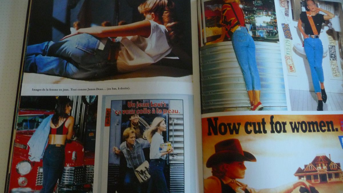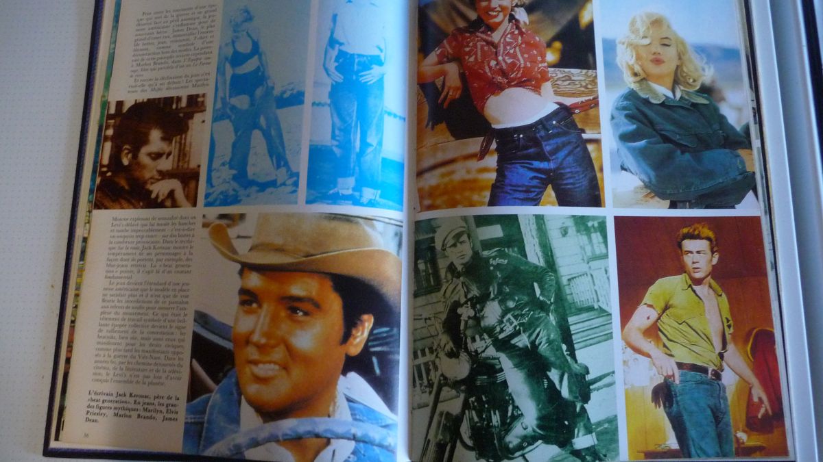 De nombreuses photos de pub, d'acteurs ou personnalités en jean;