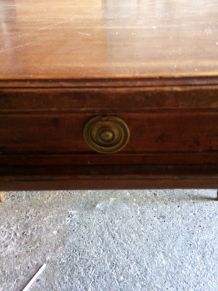 Ancien bureau de notaire début 20eme entièrement rénové aux goûts du jour en atelier. Patine noir et bois naturel lui donnant un aspect industriel / atelier. Deux blocs de tiroirs, un de 3 et l’autre de 6, reliés par un plateau.