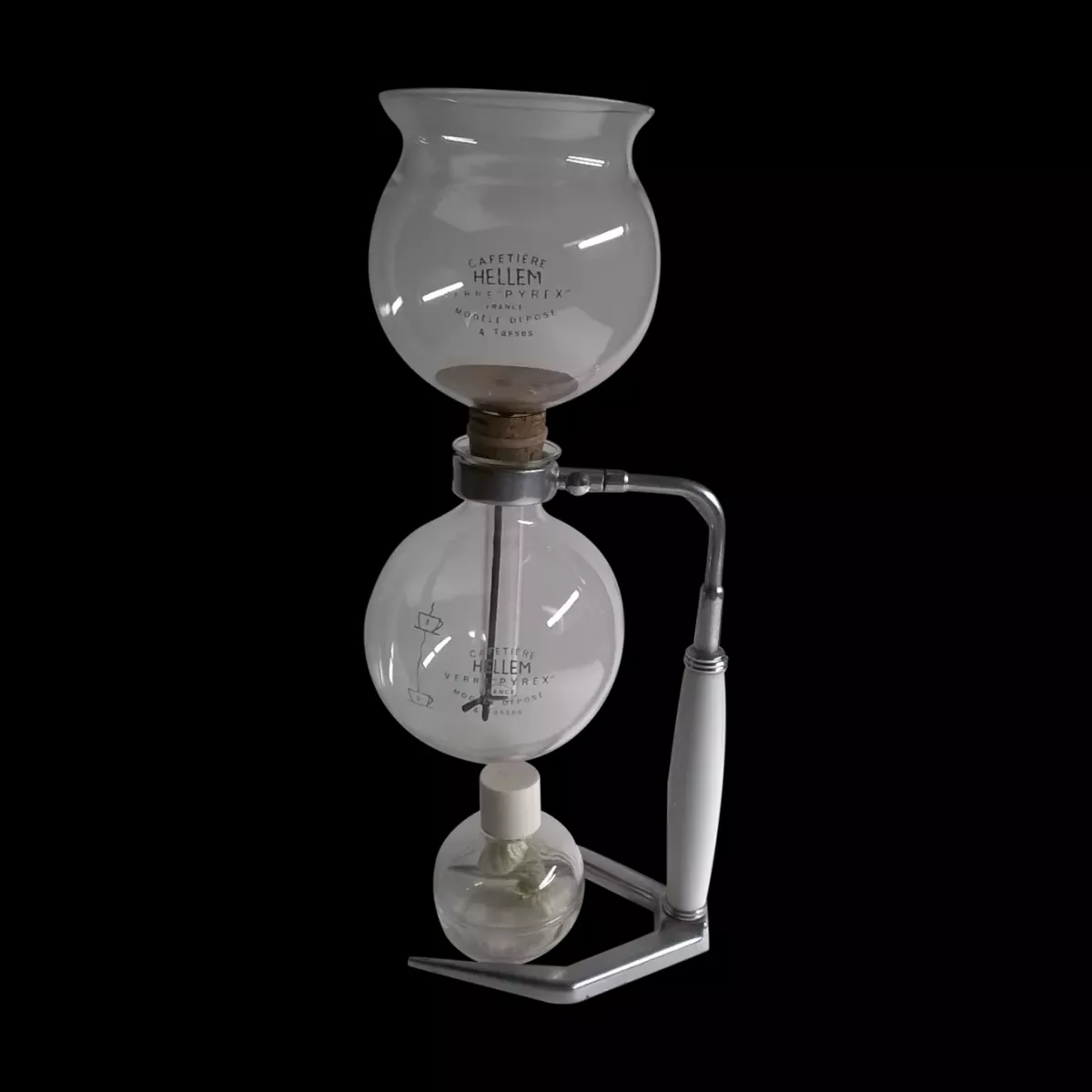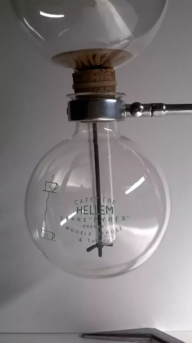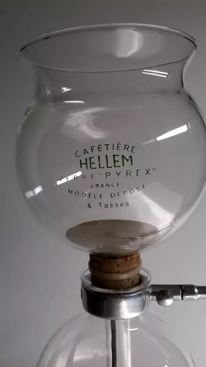 Très belle cafetière Hellem, de bonne qualité, pas de manque, de rayures ou d'éclat. Possède son flacon à huile d'origine, pour chauffer l'ensemble... Pour une déco vintage et même s'en servir pour faire un bon café.