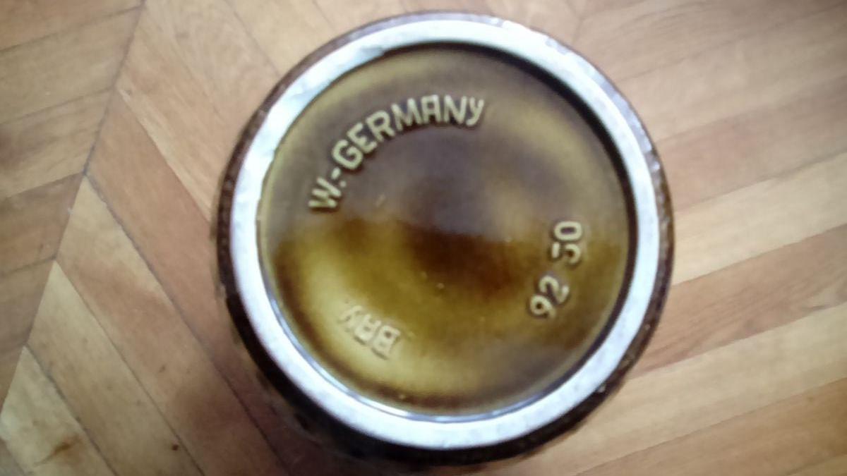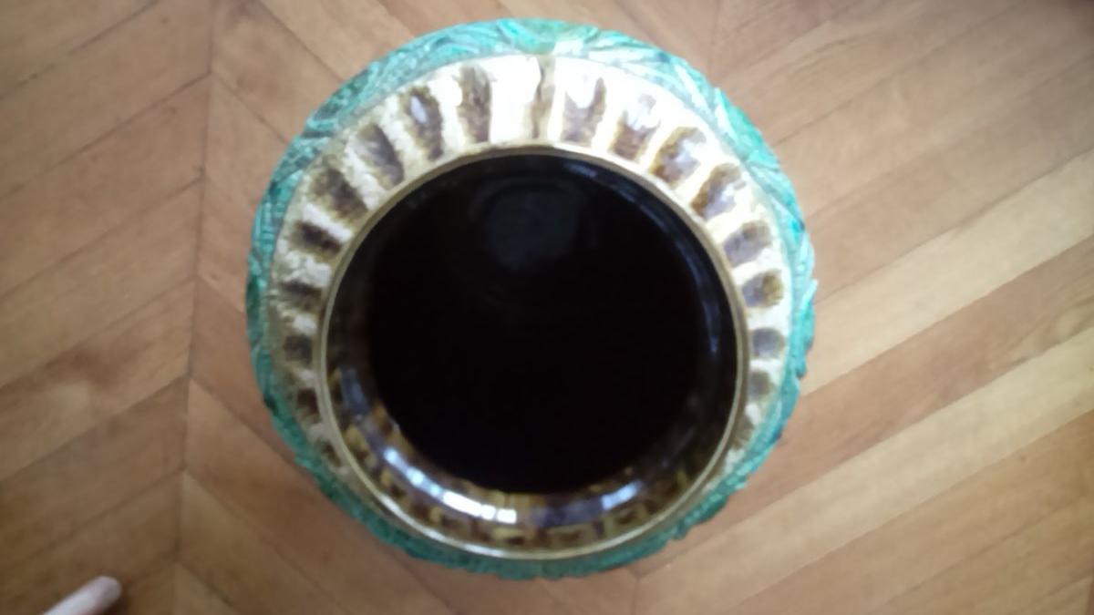 Vase original Germany en céramique avec des motifs en relief de style ethnique de couleur bleu/vert lagon.