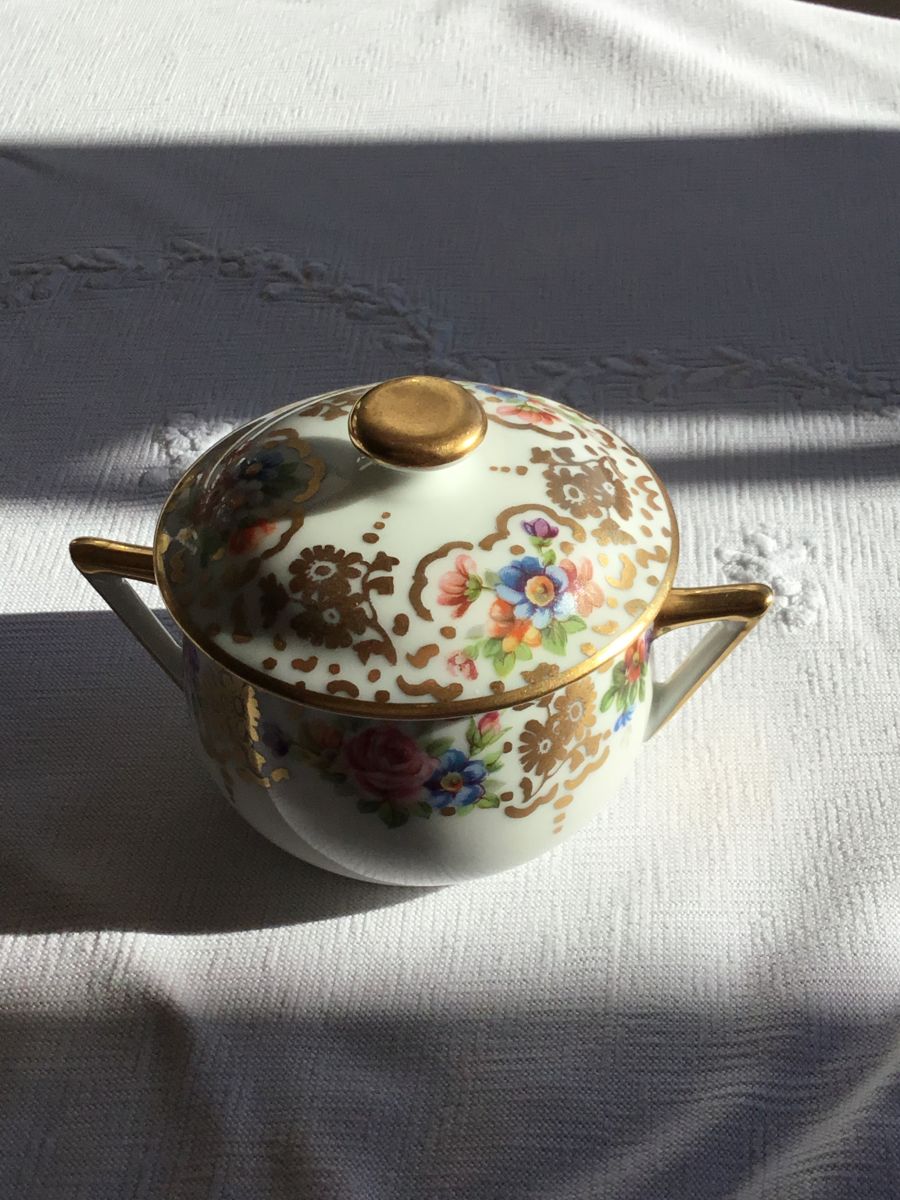 Jolie petite boîte en porcelaine de Limoges, à décor fleuri. Poids 120g. Diamètre 6 cm. Hauteur 7 cm avec le couvercle. Parfait état.