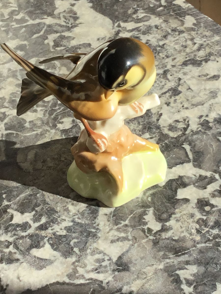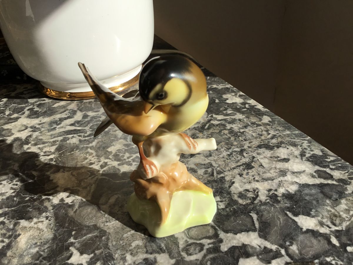 Joli sujet en porcelaine allemande, mésange ou hirondelle peut-être ! Il provient d’allemagne, acheté dans les années 1950.