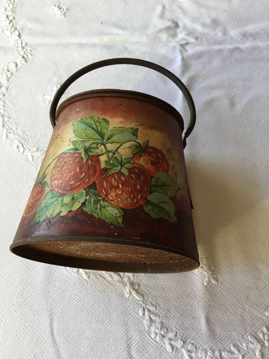 Jolie boîte en métal avec anse de la première moitié du vingtième siècle.
