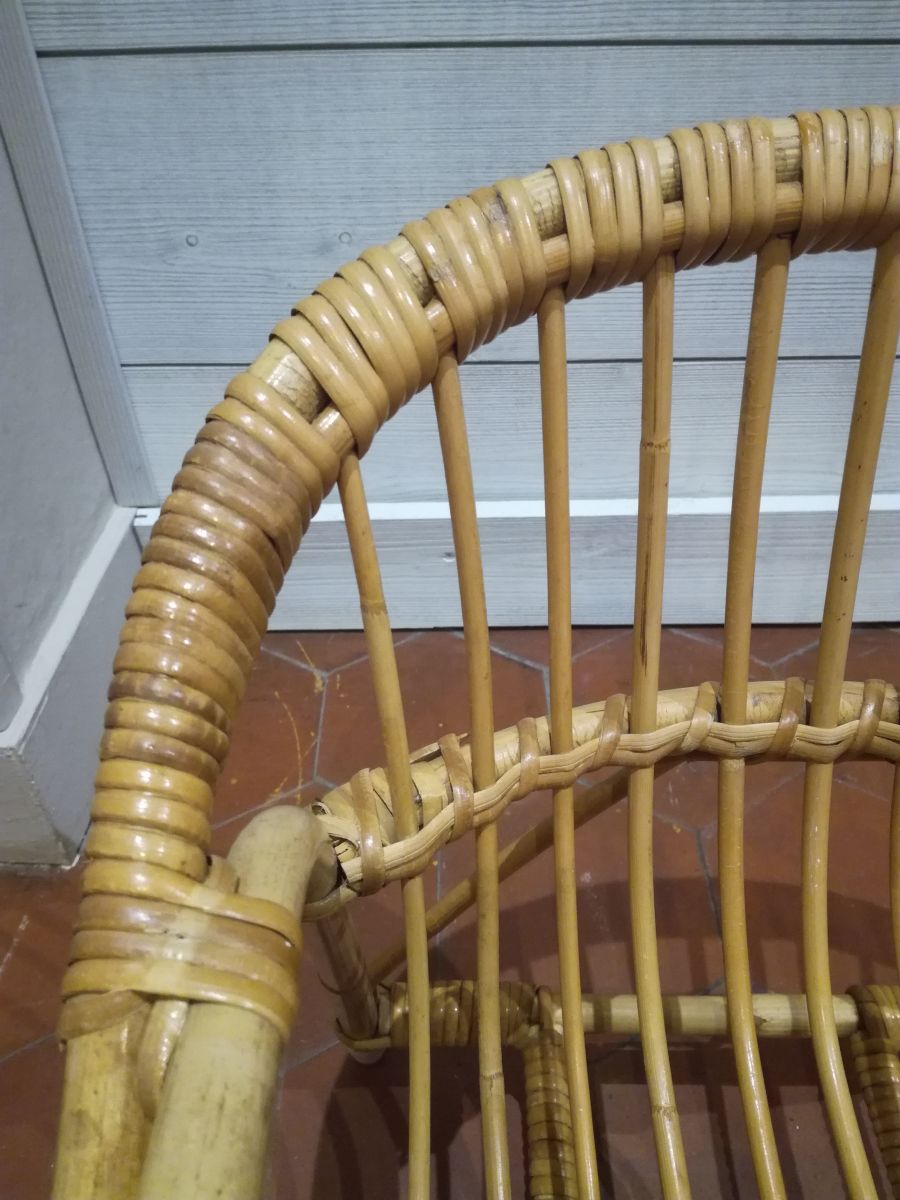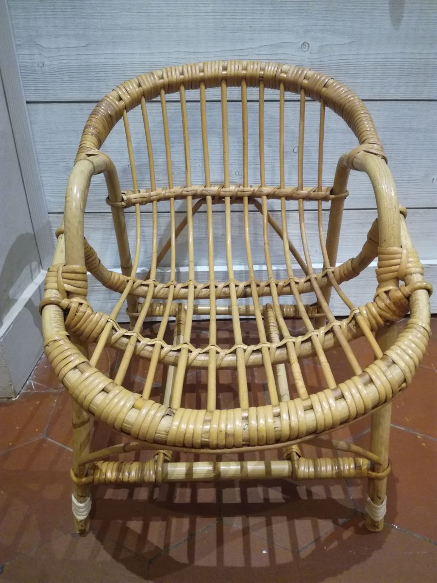 Fauteuil en rotin ,forme coquille pour jeune enfant. En très bon état. Hauteur assise 23/24 cm