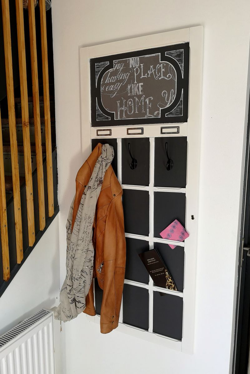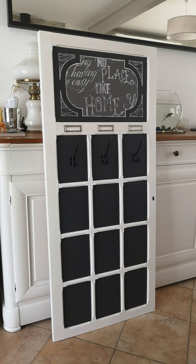Garnie de 3 patères, 3 porte noms et 12 petits cadres pour y mettre des photos, post it, pense-bête,...