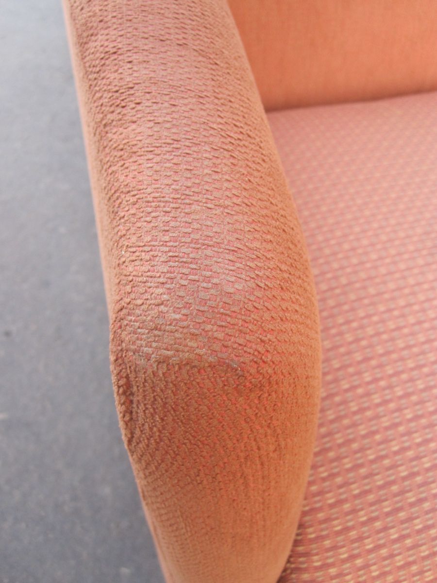 Hauteur assise 49 cm. Diamètre assise 50 sur 48 cm. Hauteur vers le dossier 77 cm. Quelques traces d'usure voir photos merci. Couleur marron rouille.