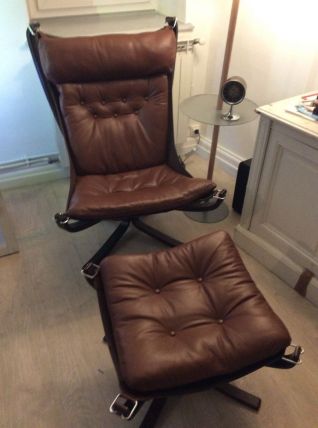 Fauteuil Falcon + Ottoman habillage refait structure d'origine. Très bon état.