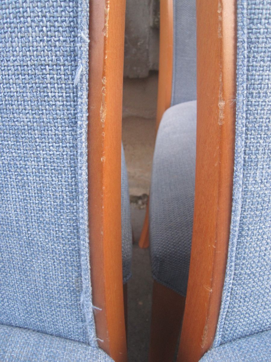 Hauteur assise 44 cm, Assise 47 sur 43 cm, à noter quelques tache et marque d'usure. Une chaise un est peu noircie.