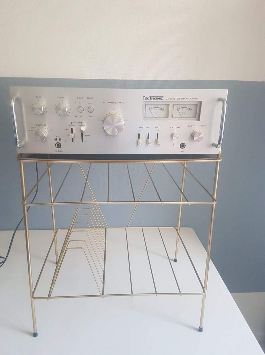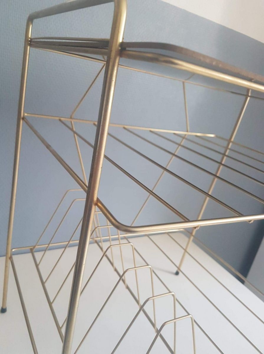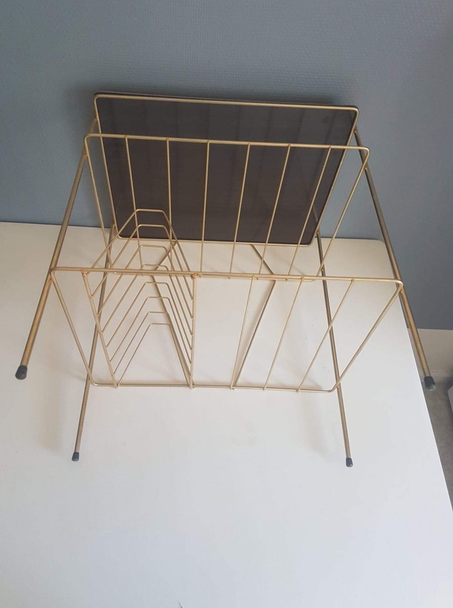 table vintage range-vinyles, porte-revues, bout de canapé des années 60.