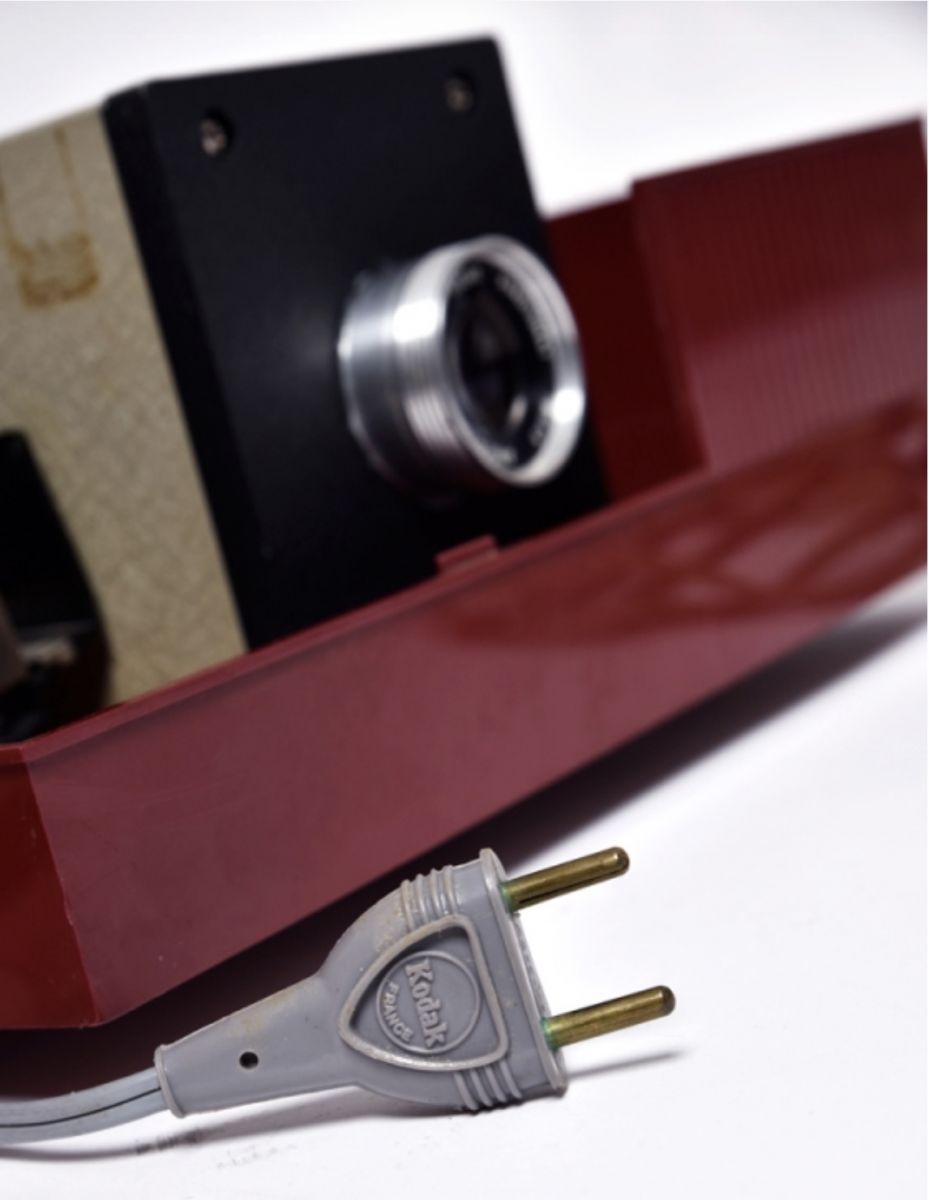 Projecteur de la célèbre marque américaine fondée par Georges Eastman en 1881. Presque 50 ans avant de faire faillite en 2012, Kodak a créée le projecteur de diaporama 300 modèle F (existe en plusieurs lettres), ce projecteur très simple d'utilisation a fait le bonheur de plusieurs générations de professeurs de biologie dans les collèges/lycées du monde entier !