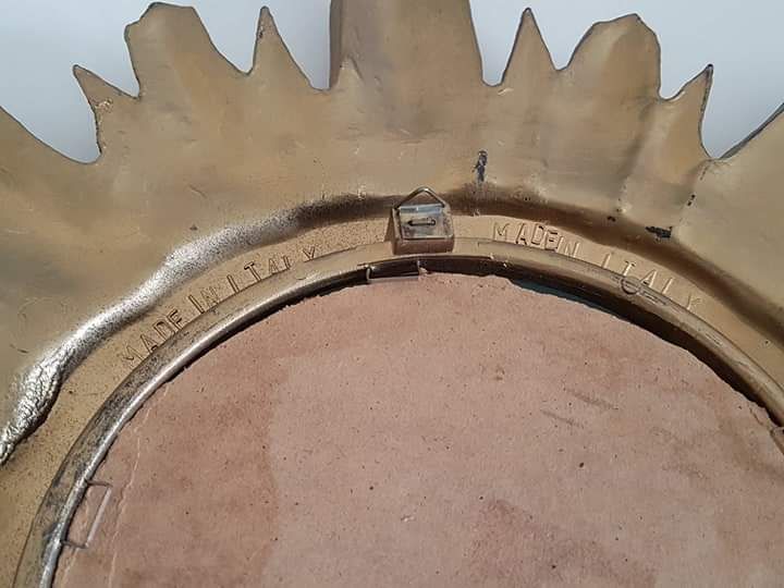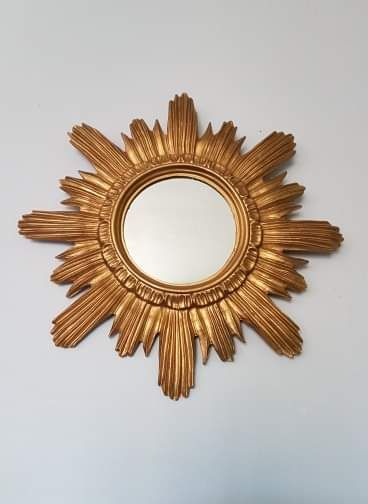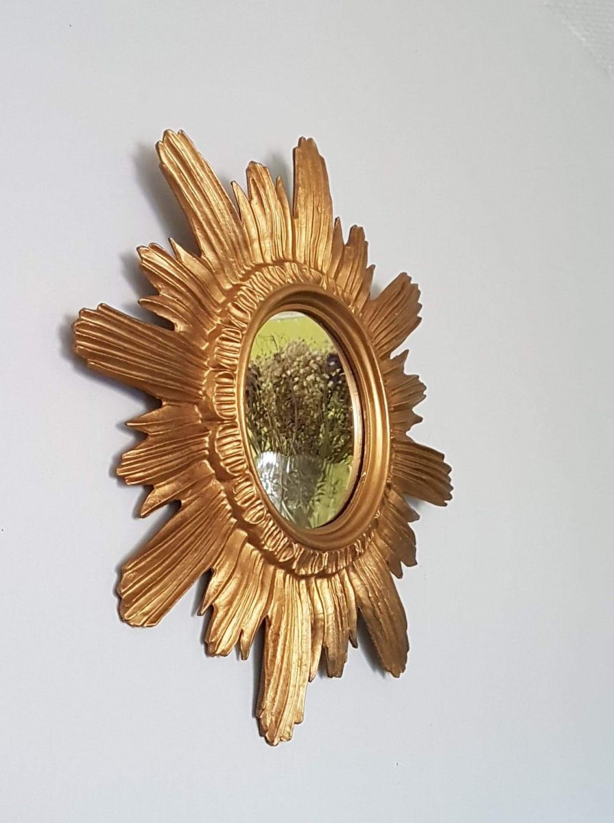 miroir soleil mural vintage en résine dorée made en Italie des années 60