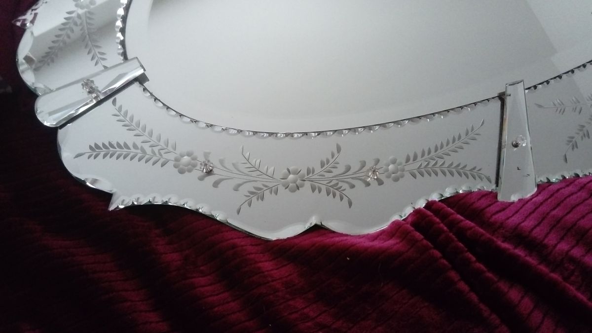 Amateurs de belles choses, voici un miroir vénitien des années 60 voir antérieure, il est dans un état impeccable, pas de manque, ni rayures.