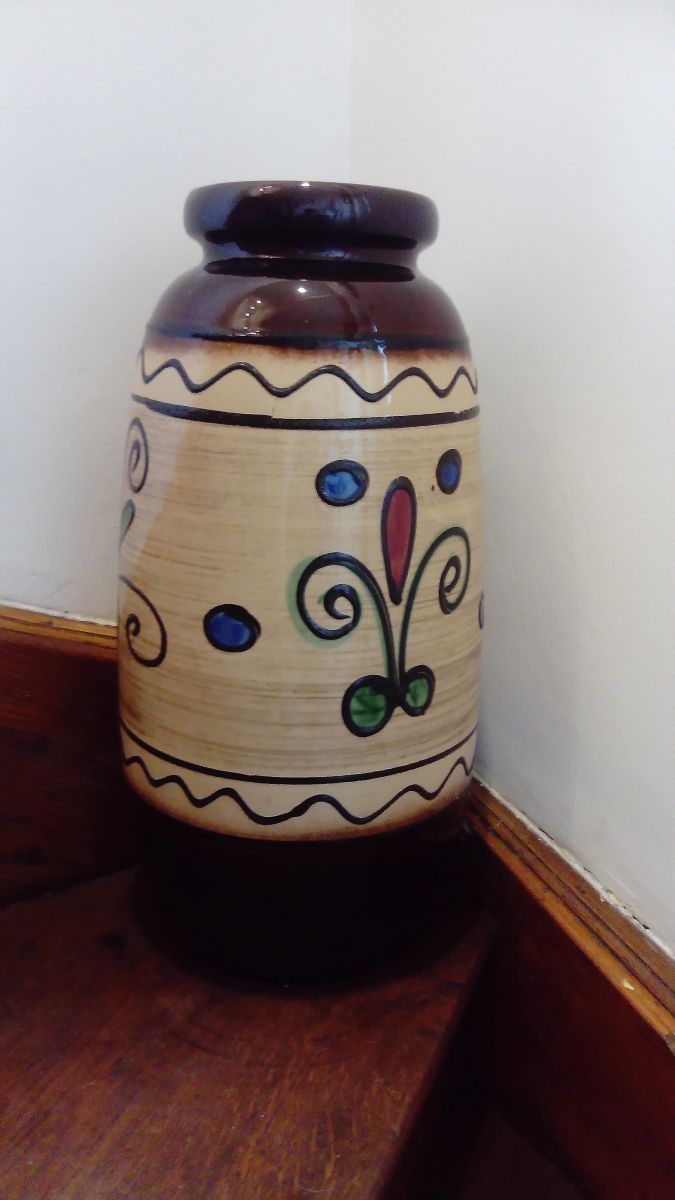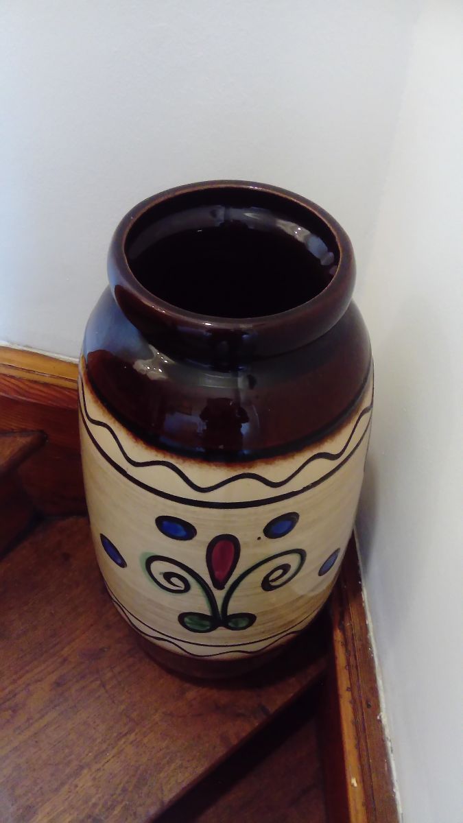 Voici un très beau et grand vase de sol des années 60 70 total look vintage, vous pouvez aussi l'utiliser comme porte parapluie ou Cannes. Il est marqué sur le dessou W Germany et numéroté. L'état est vraiment impeccable. Hauteur 55 cm