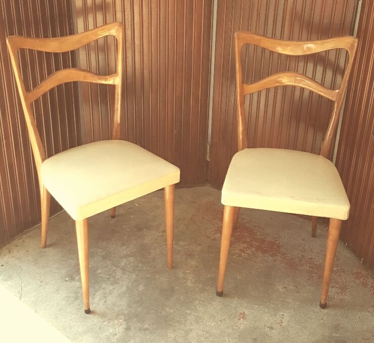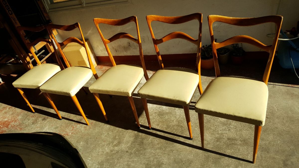 Suite de 6 chaises Italienne Consorzio Sedie Friuli des années 50. Etiquette présente sur les piedsites.