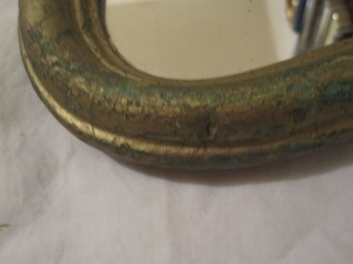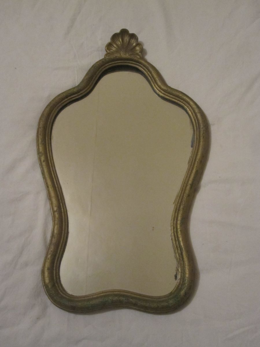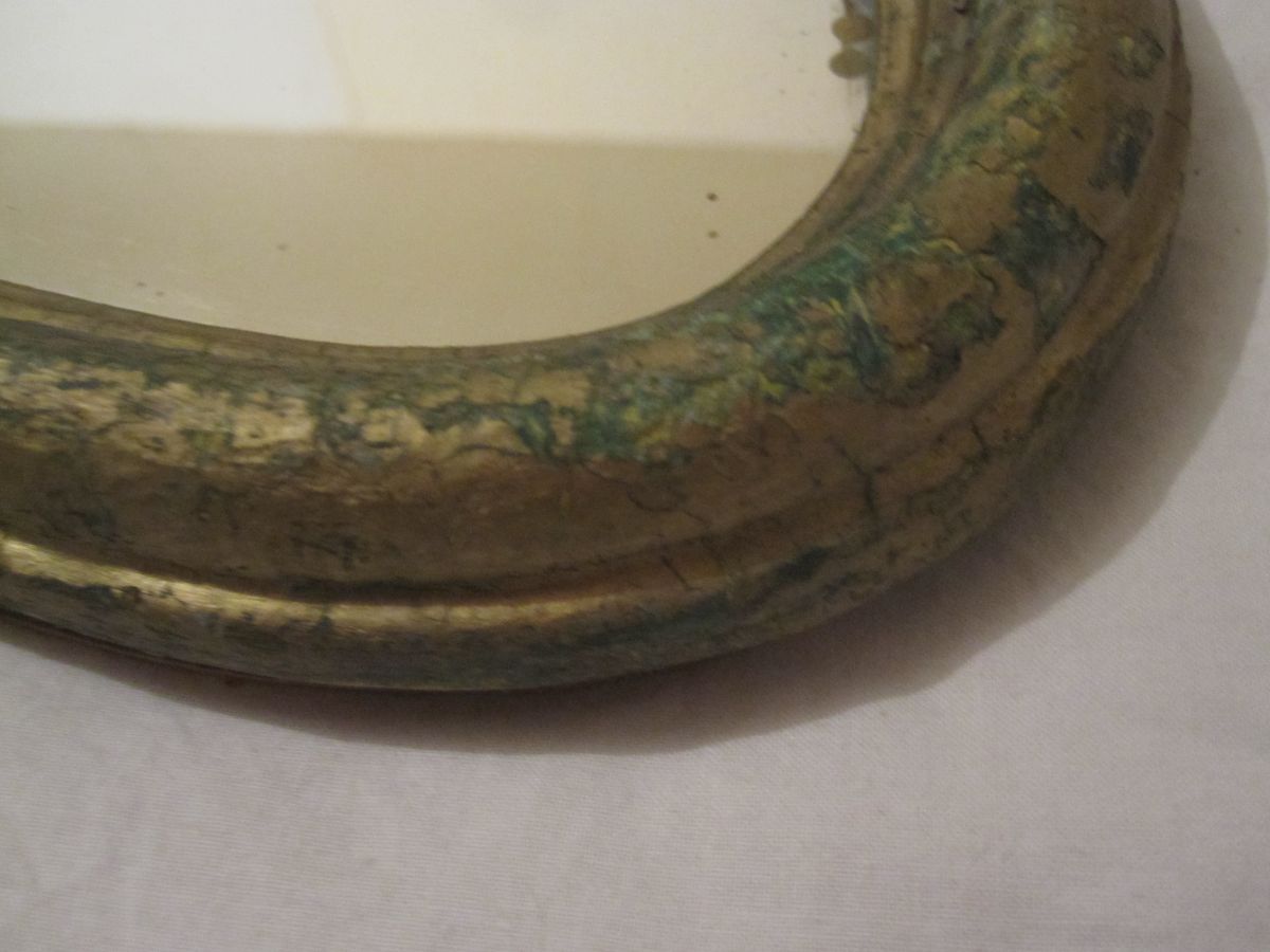 format encadrement 62 sur 36 cm. format du miroir 51 sur 31 cm. a noté le dorure est un peu usé. le contre plaqué a l arrière est un peu abîmé.