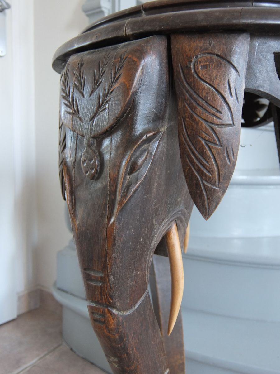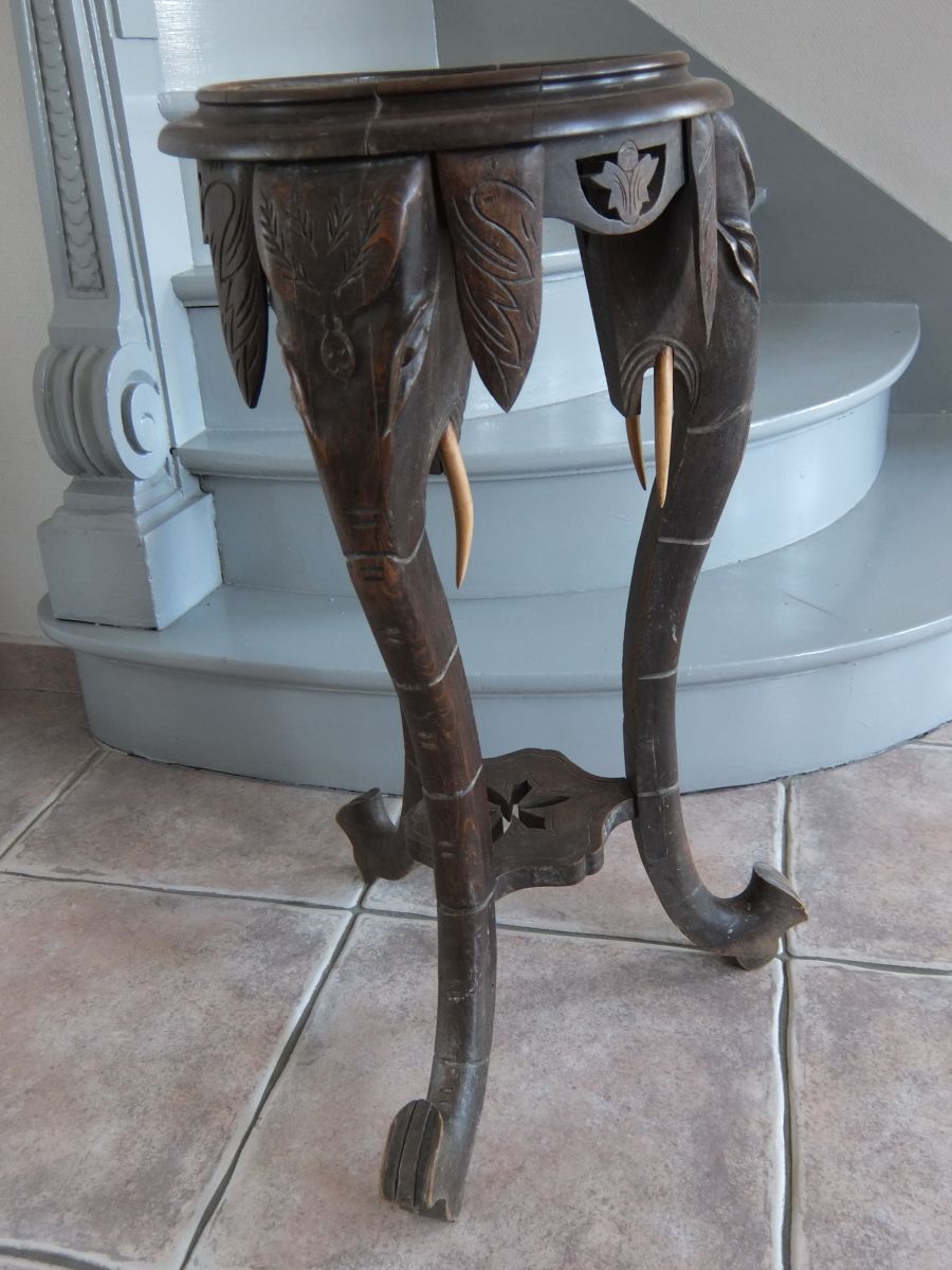 elle sellette art déco à décors d'éléphant, hauteur environ 75 cm. Les défenses d'éléphant ne sont pas en ivoire mais en bois plus clair.