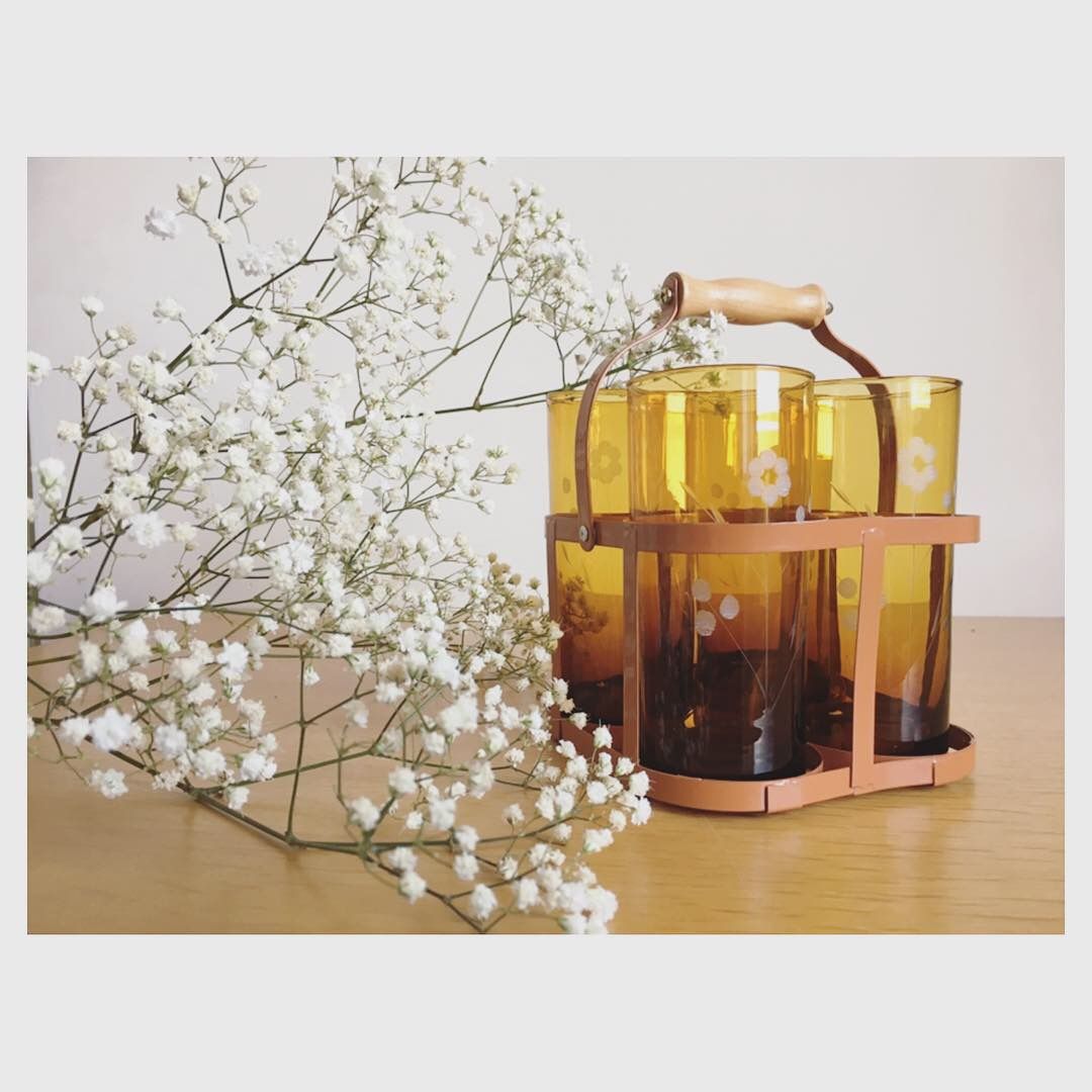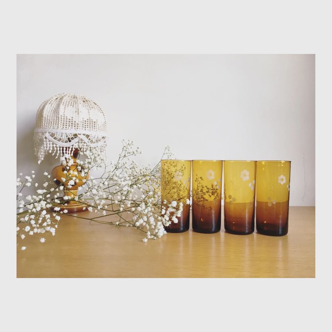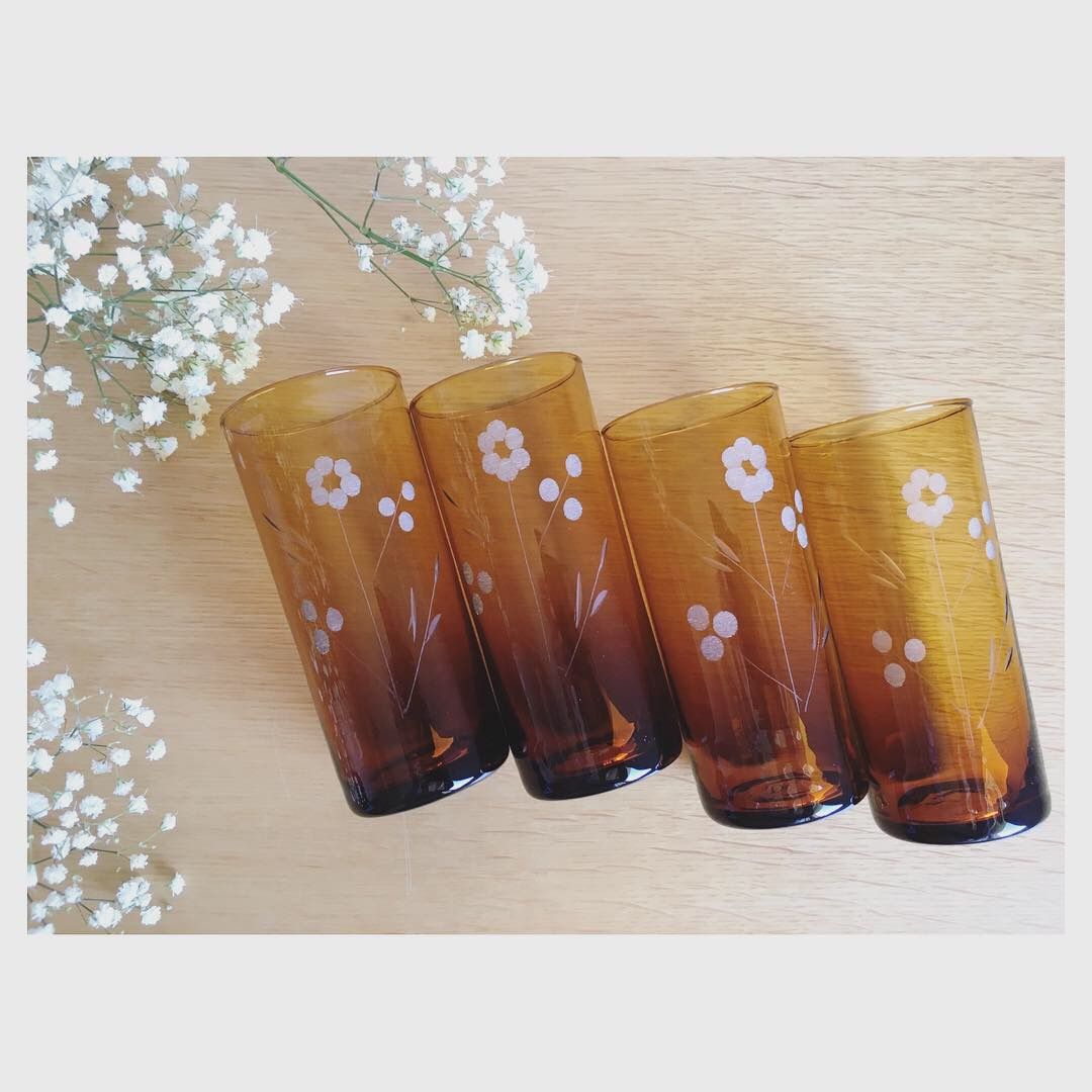 Quatre jolis verres à orangeade ambrés qui appelle au soleil.