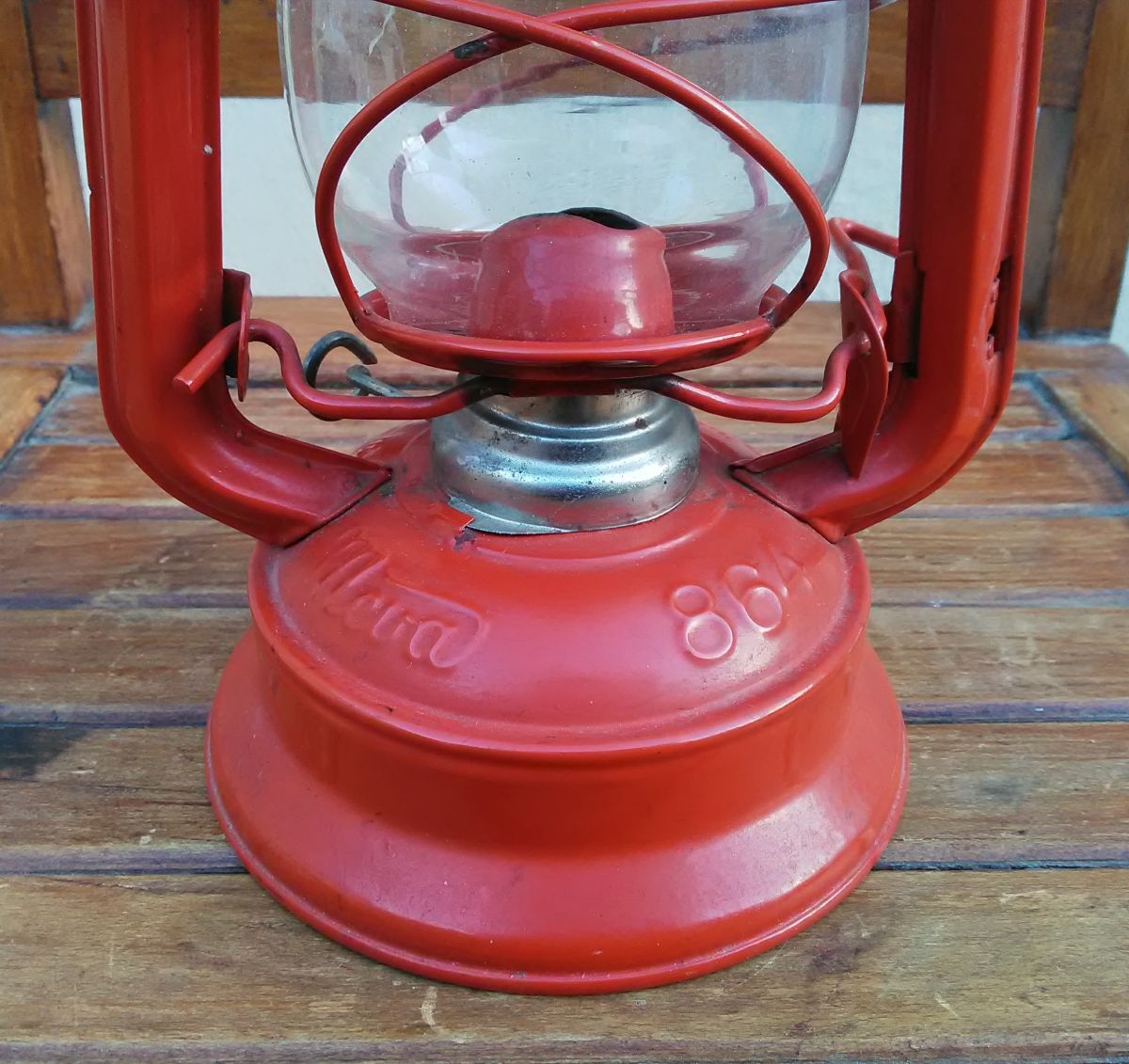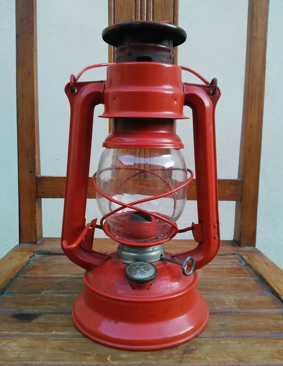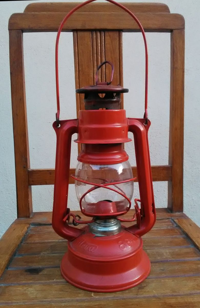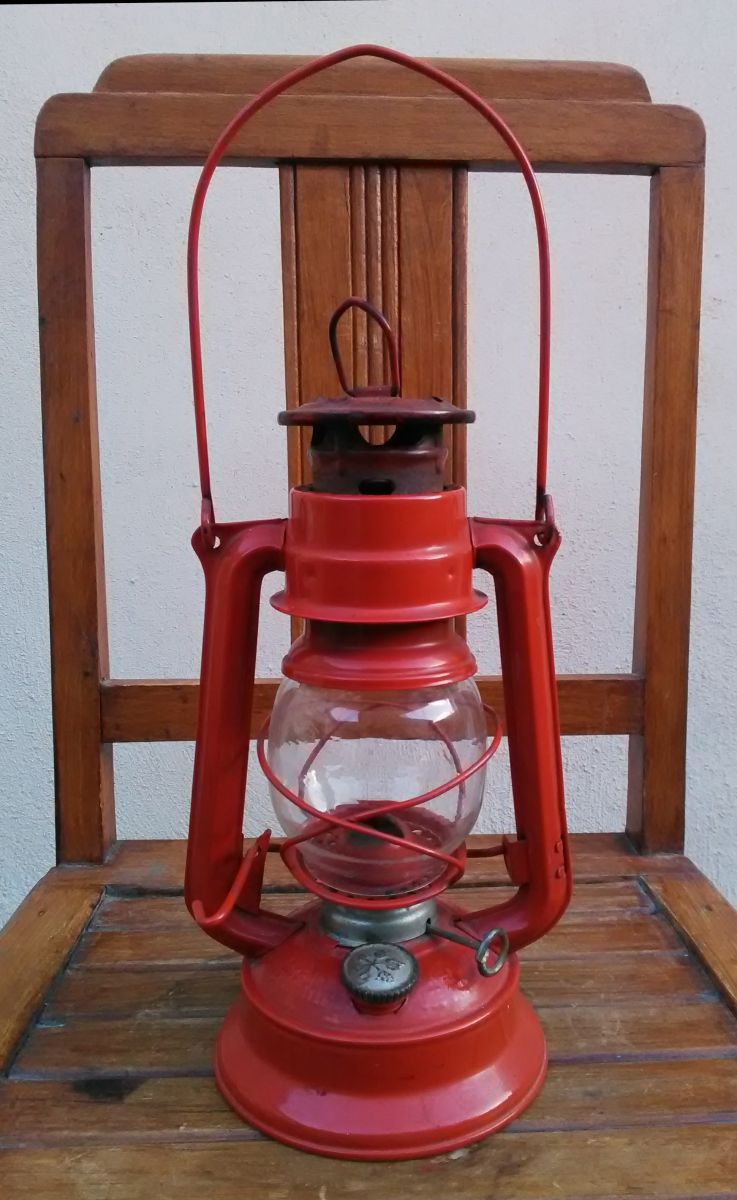 Jolie lampe tempête à pétrole (métal et verre)