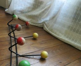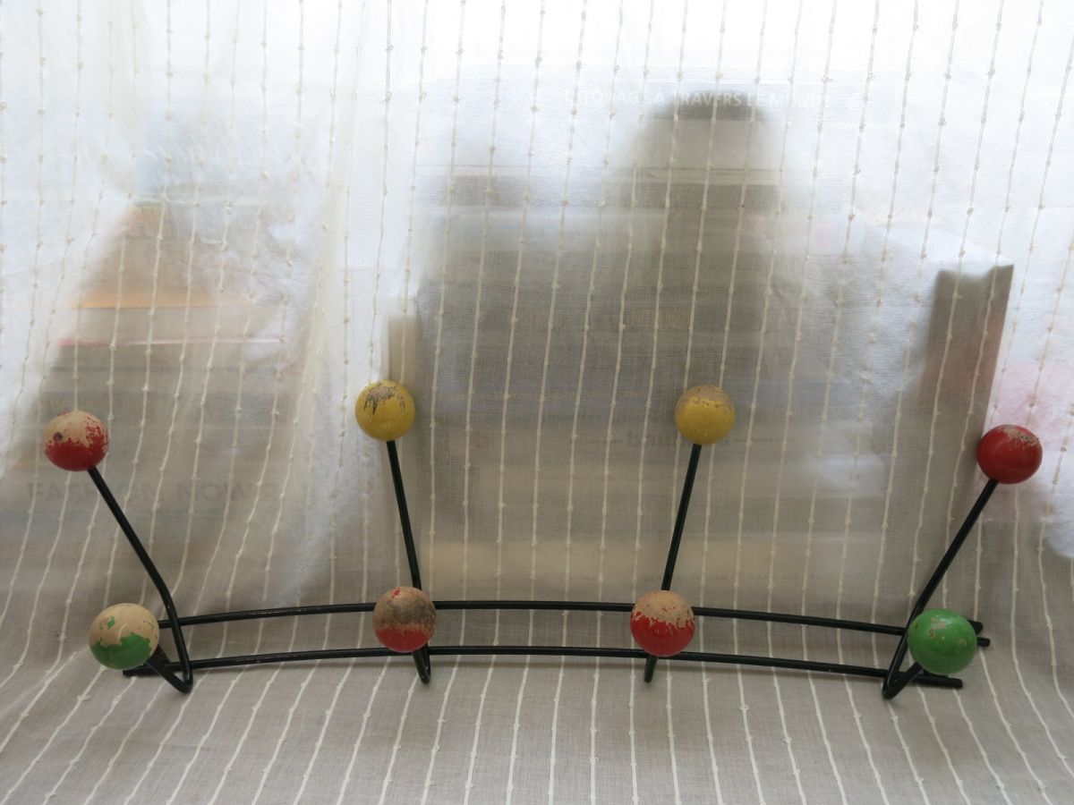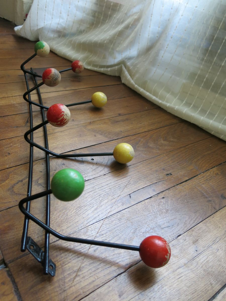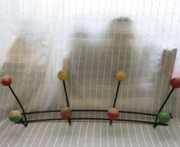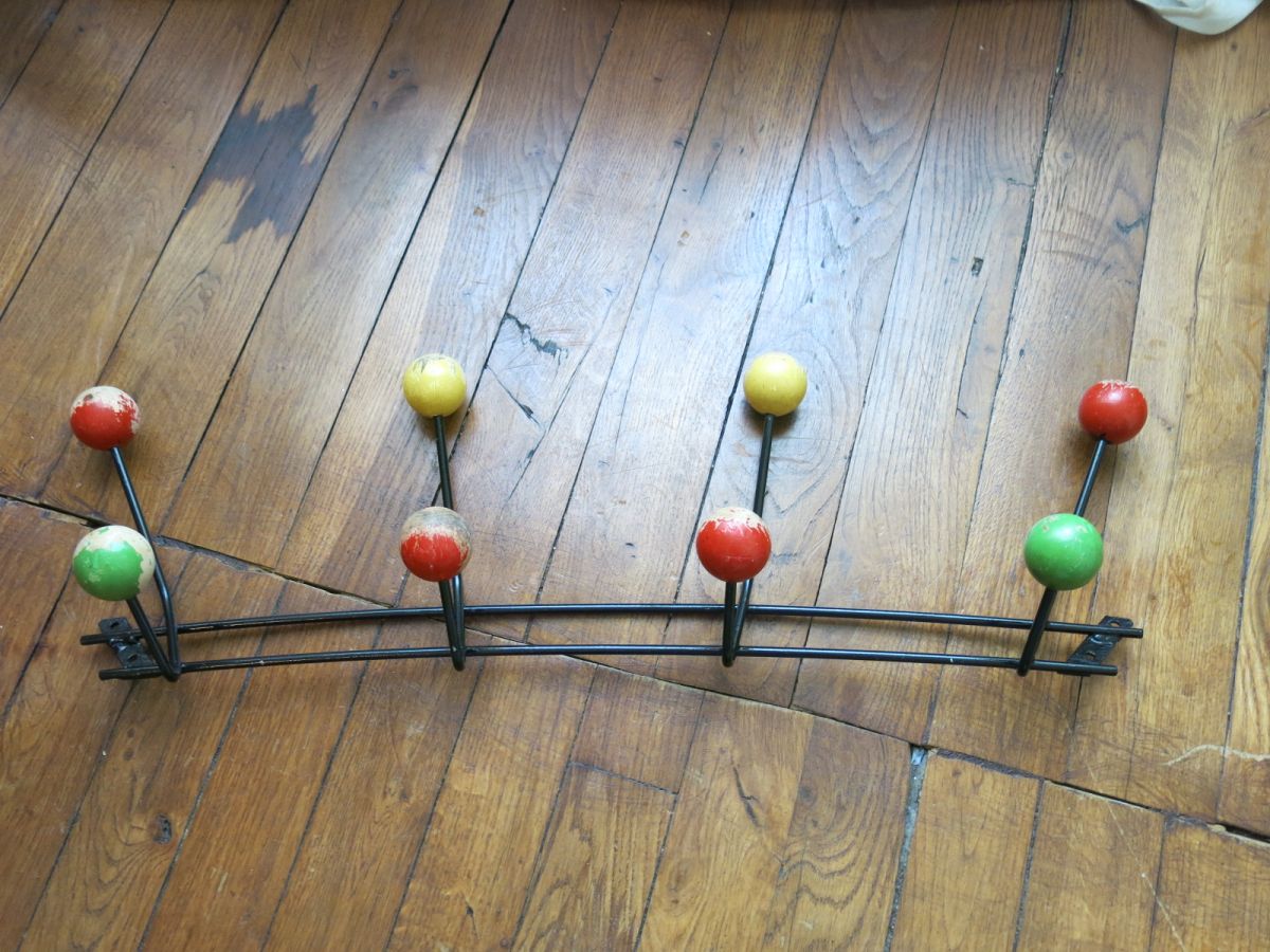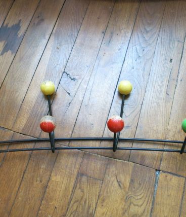 Porte manteau 50s métal & boules bois 8 patères 66cm env.