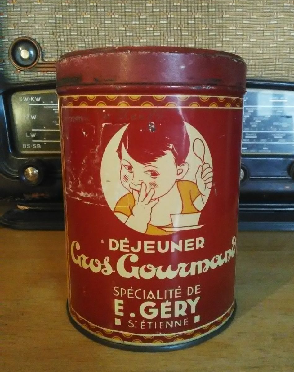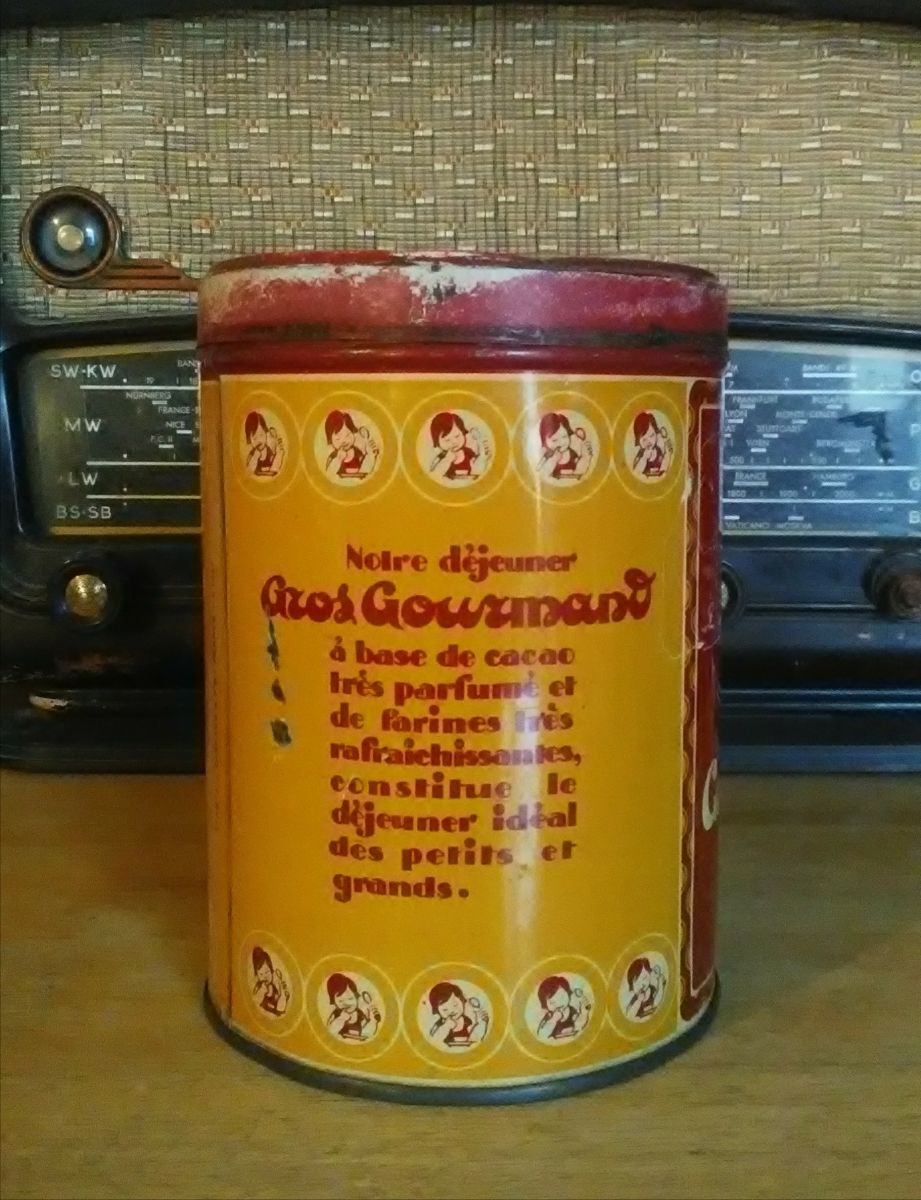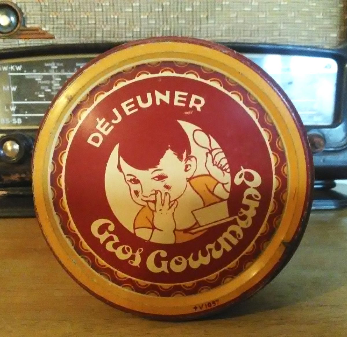 Jolie boîte en tôle lithographiée "Déjeuner gros gourmand"