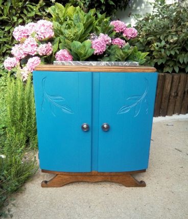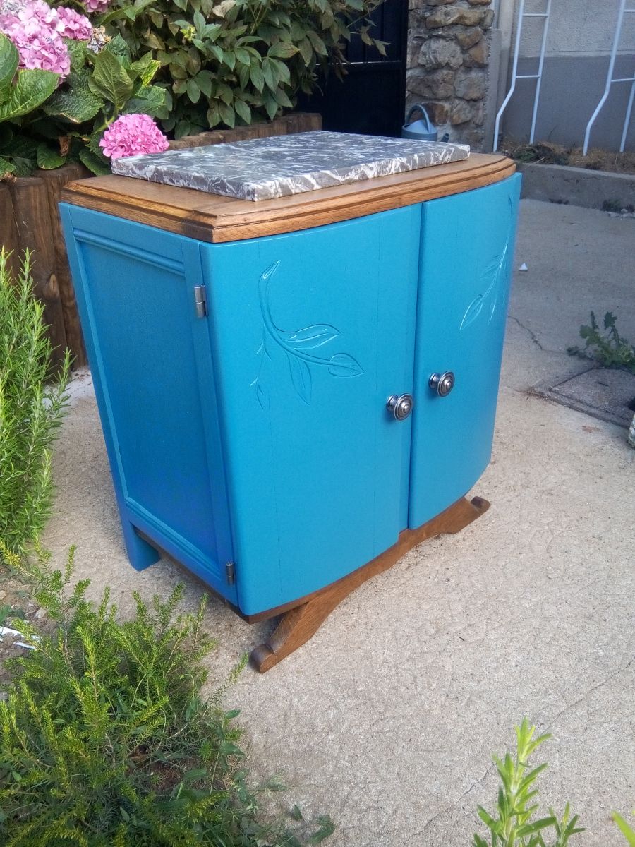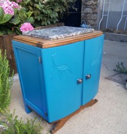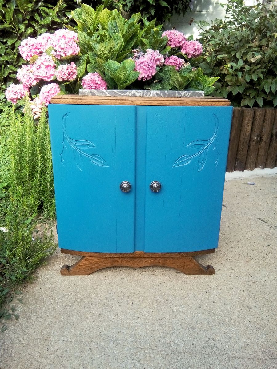 Couleur : bleu pétrole et chêne vernis mat.