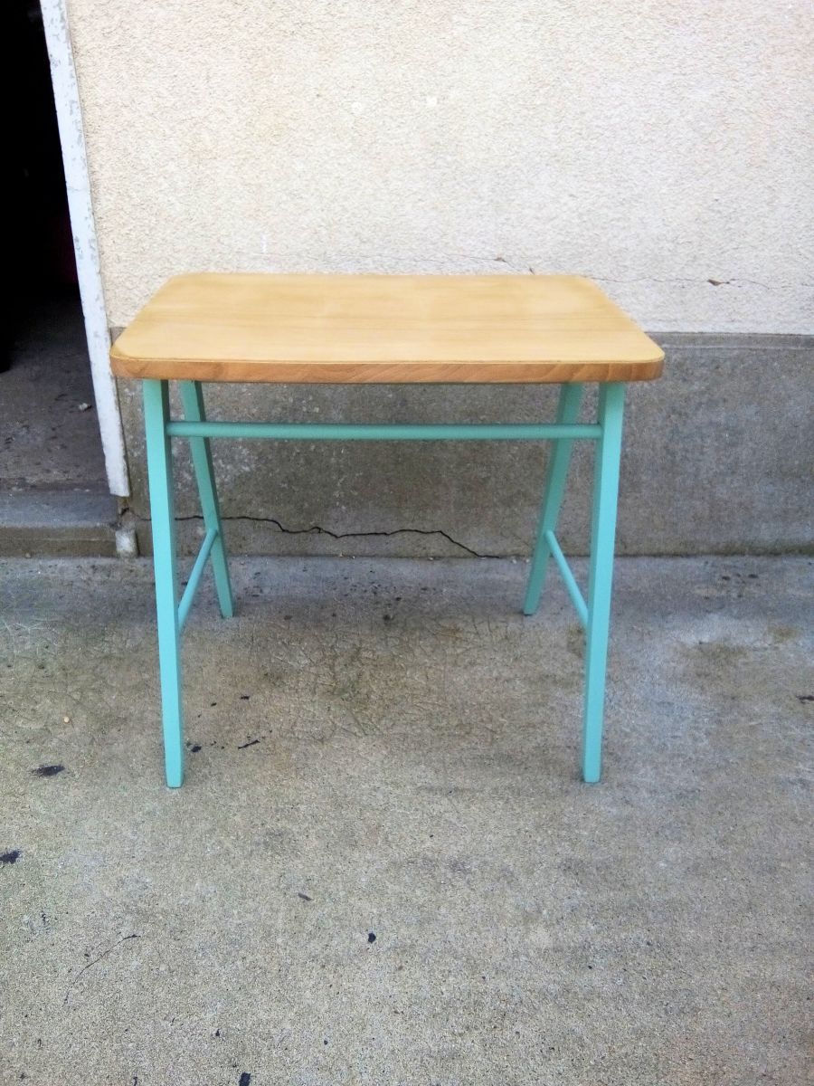 Bureau pour enfant ancien en bois, rappelant le style Baumann.