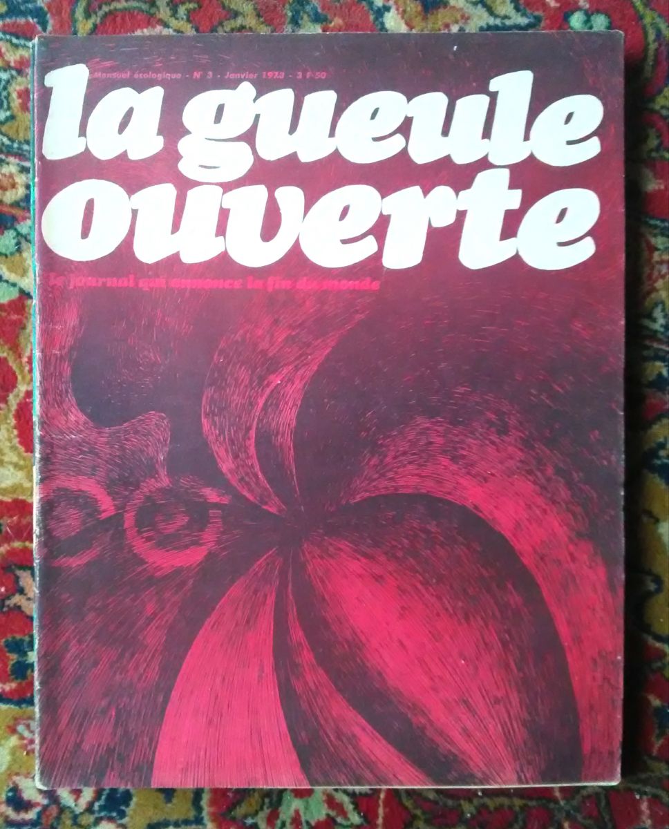 La gueule ouverte est un journal satirique, politique et écologiste fondé en 1972 par Pierre Fournier, pacifiste convaincu et journaliste à Charlie Hebdo avec la participation de Cavanna, Wolinski, Reiser, Cabu ...