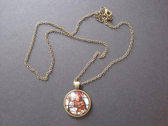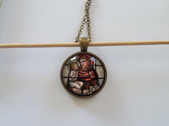 Pendentif Religieux Médaillon Saint ANTOINE Image sous Verre Chaîne Assortie