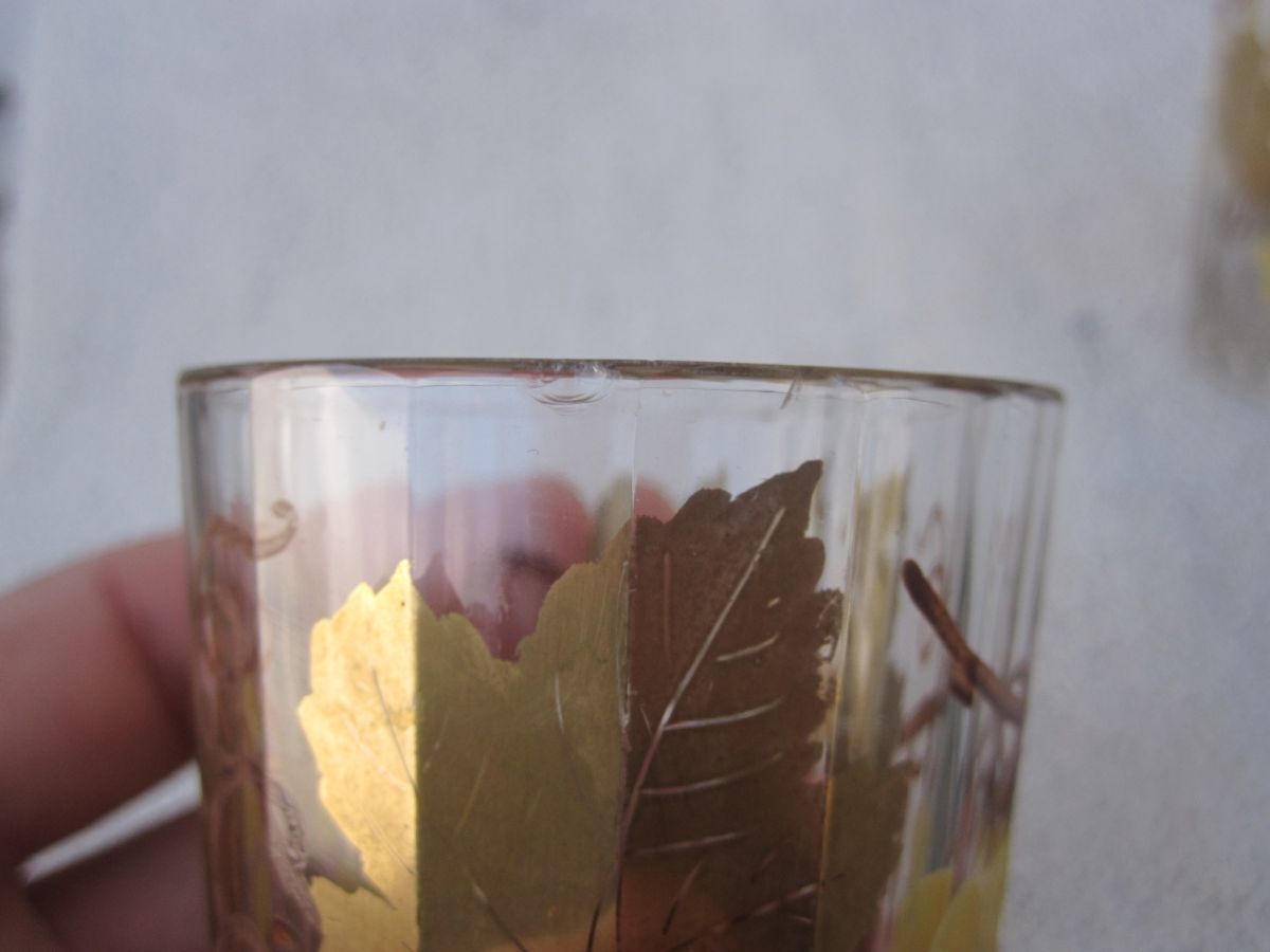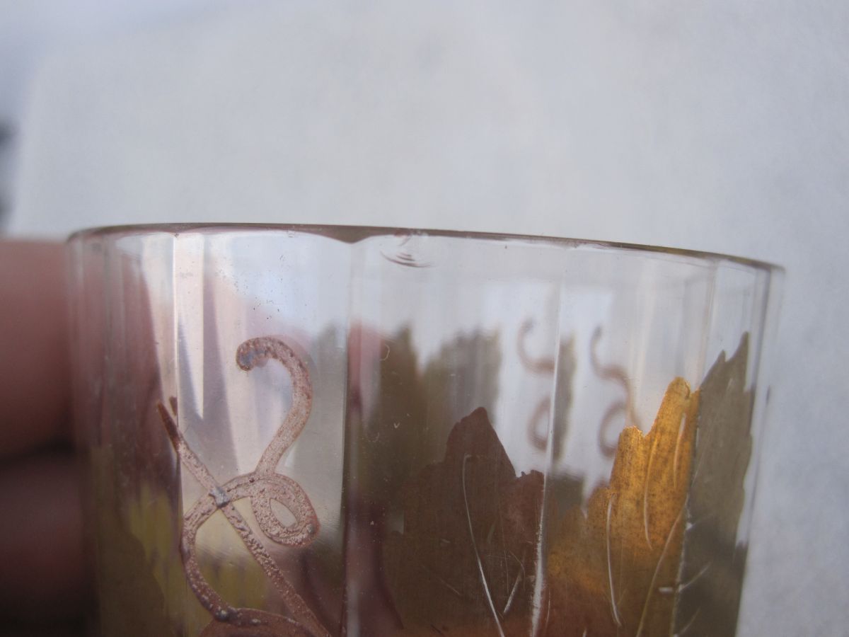 en cristal 1920-1930, dorure et email Delvaux. a noté quelque mini éclat sur les cols. hauteur 9 sur 5 cm de largeur.