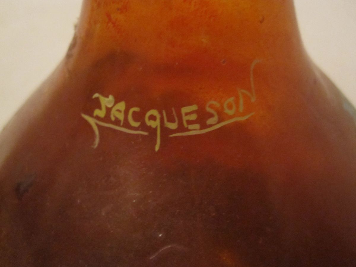 superbe décor paysage et une petite bâtisse. signée Jacqueson. a noté quelque manque de peinture. hauteur 30 cm sur 20 cm de largeur.
