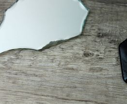 le miroir est biseauté et présente un défaut sur un côté (photo)