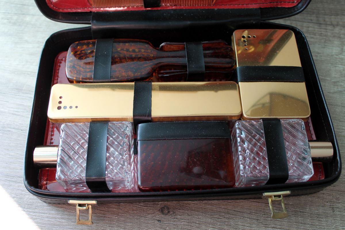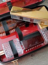 les brosses et flacons n'ont jamais servi, 2 flacons verres , 1 étui à savon et 1 étui à brosses à dents en plastique