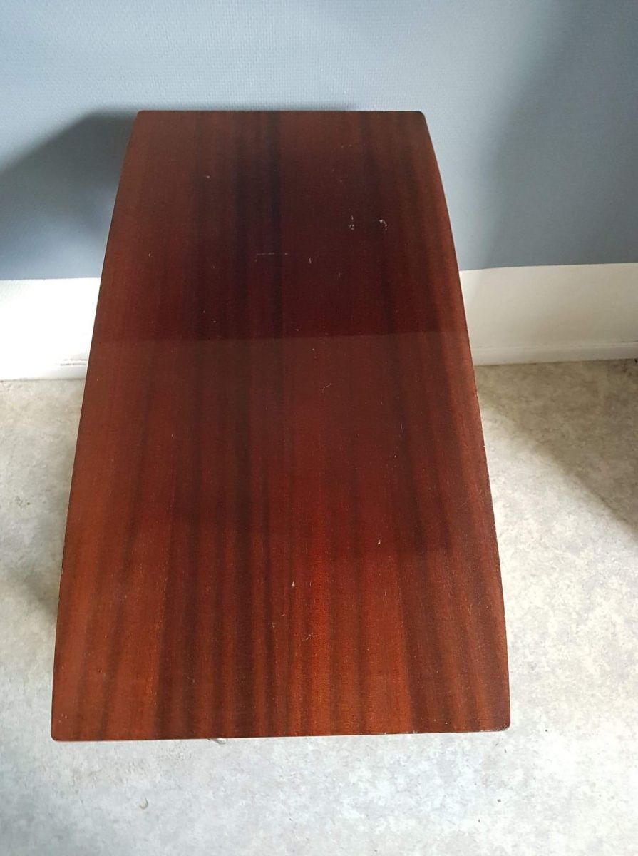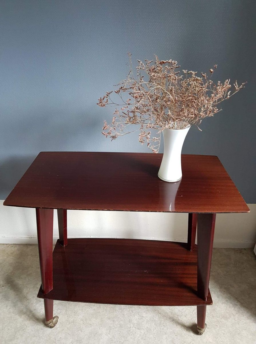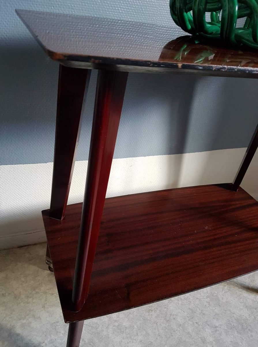 table tv vintage à roulettes et 2 tablettes années 60 vernie