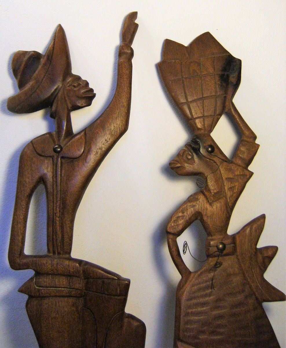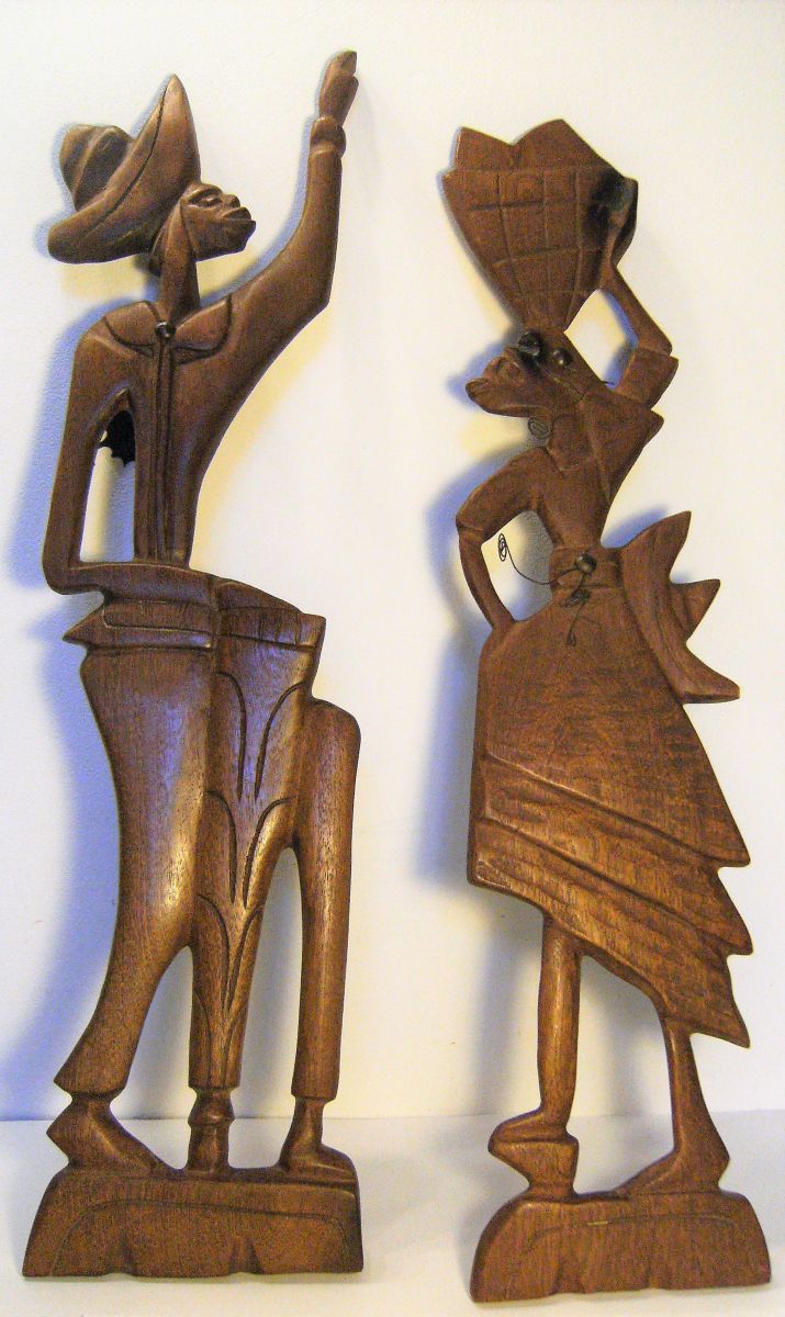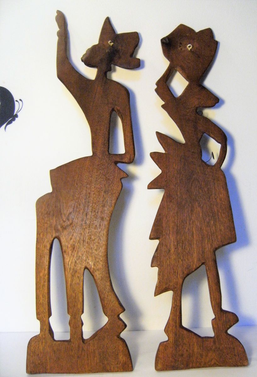 Statuettes "plates" murales en bois exotique "Art Africain" année 50/70.