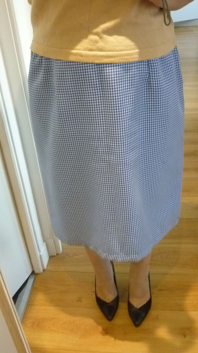 Jupe vintage pied de poule bleu et blanc en bon état