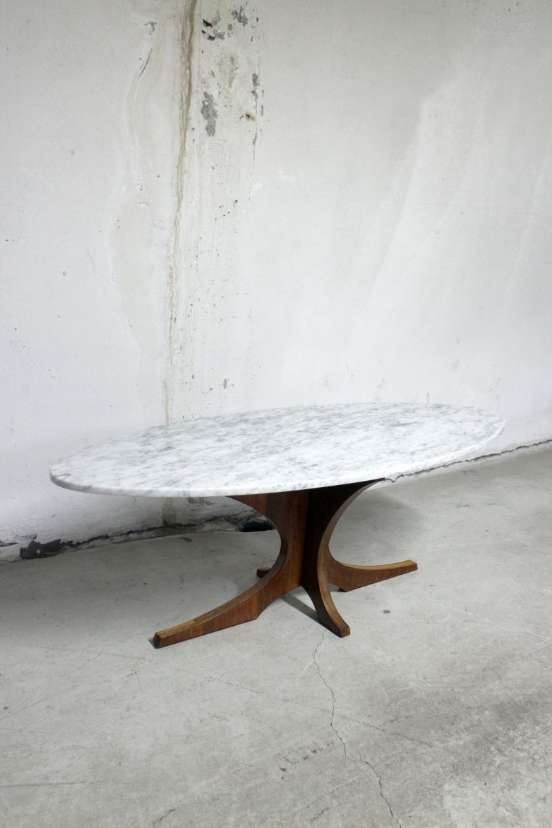 RARE - Table marbre ovale blanche vintage et grise années 60