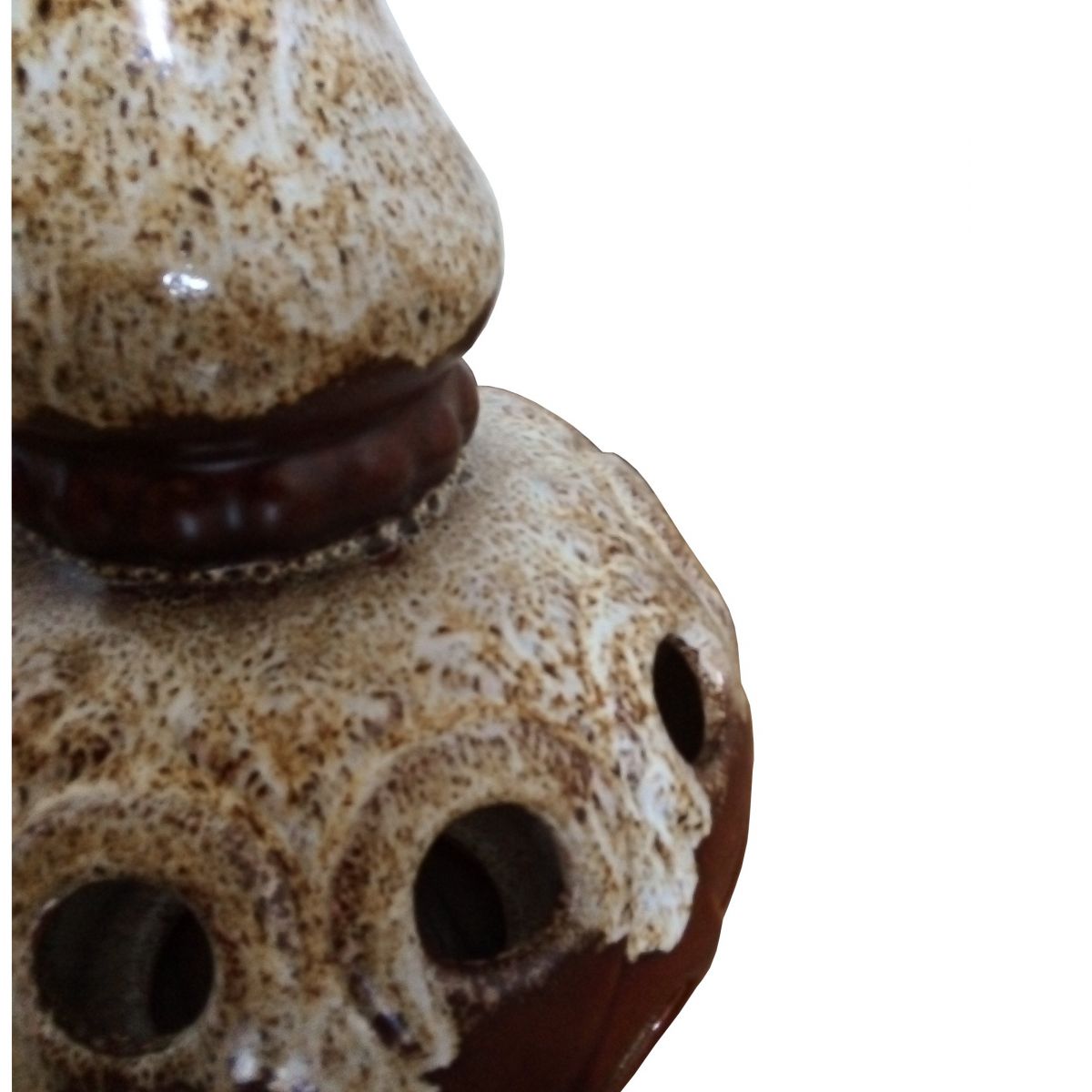 Pied de lampe à double douille à vis; éclairage par l'intérieur du pied et sur son sommet. Fabrication française, années 50, céramique en excellent état.