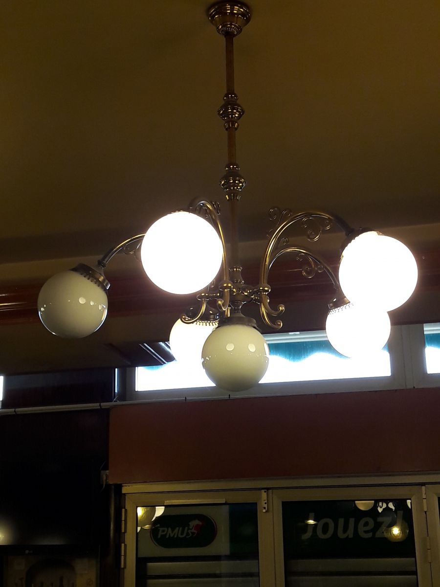 Suspensions 5 branches avec globes verre de belle qualité en bon etat