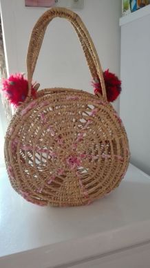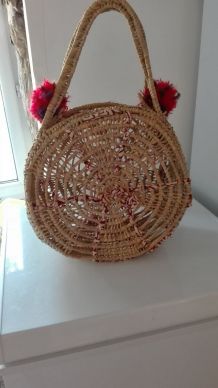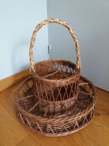 Panier vintage porte bouteilles et verres en rotin et bambou ...mini bar, pour intérieur ou jardin.