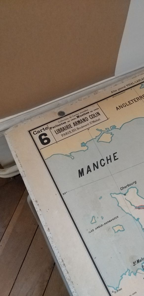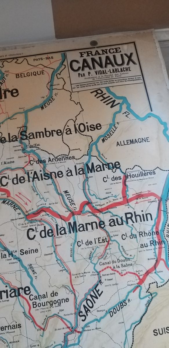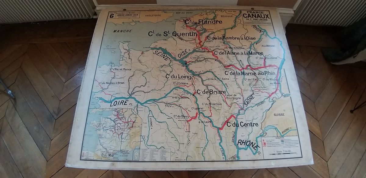 Carte murale scolaire cartonnée double face vintage n° 6 - 6bis (France canaux)