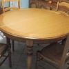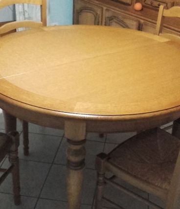 Table diamètre 120cm avec deux rallonges de 40 cm.