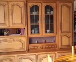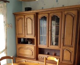 Buffet avec des nombreux rangements : bar, tiroirs, vitrines, placards, niche.