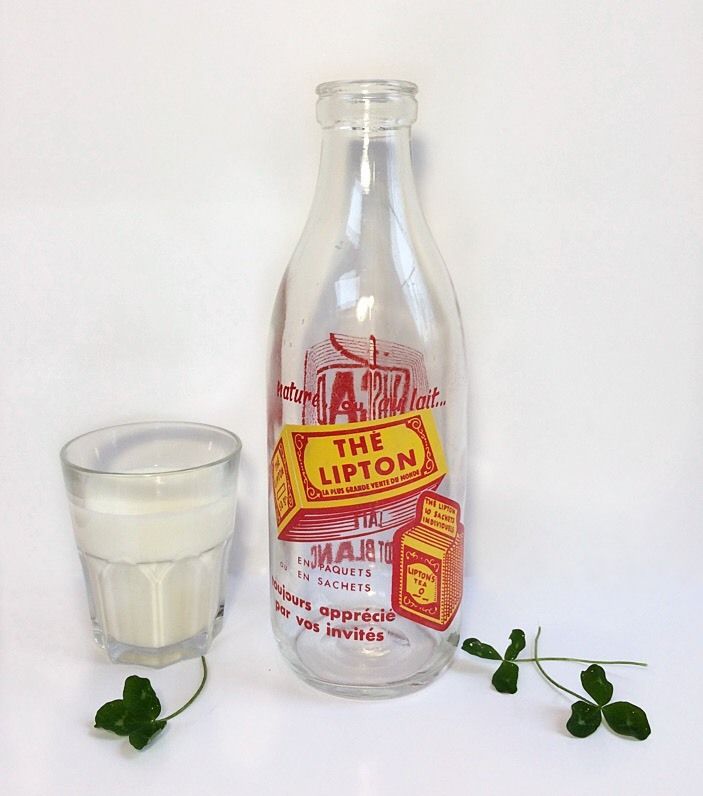 bouteille de lait publicitaire "thé lipton" 1950