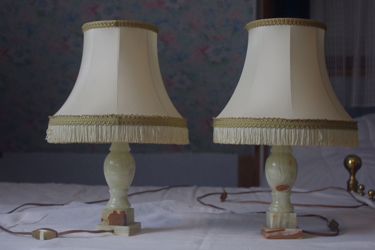 Paire de lampes de chevet en albâtre de Voltera, abat-jour en tissus.