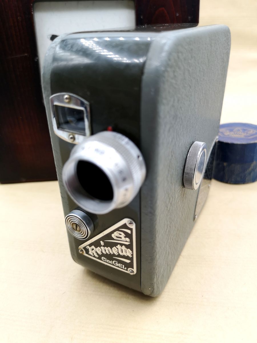 Cette caméra 8mm mécanique lancée en 1950 est un modèle qui sera également déclinée en version 9,5mm. Le film Kodak 8mm double 8 est utilisé dans la Cinégel Reinette 8. Elle doit son nom charmant à sa couleur. Fabriquée en France au Mans