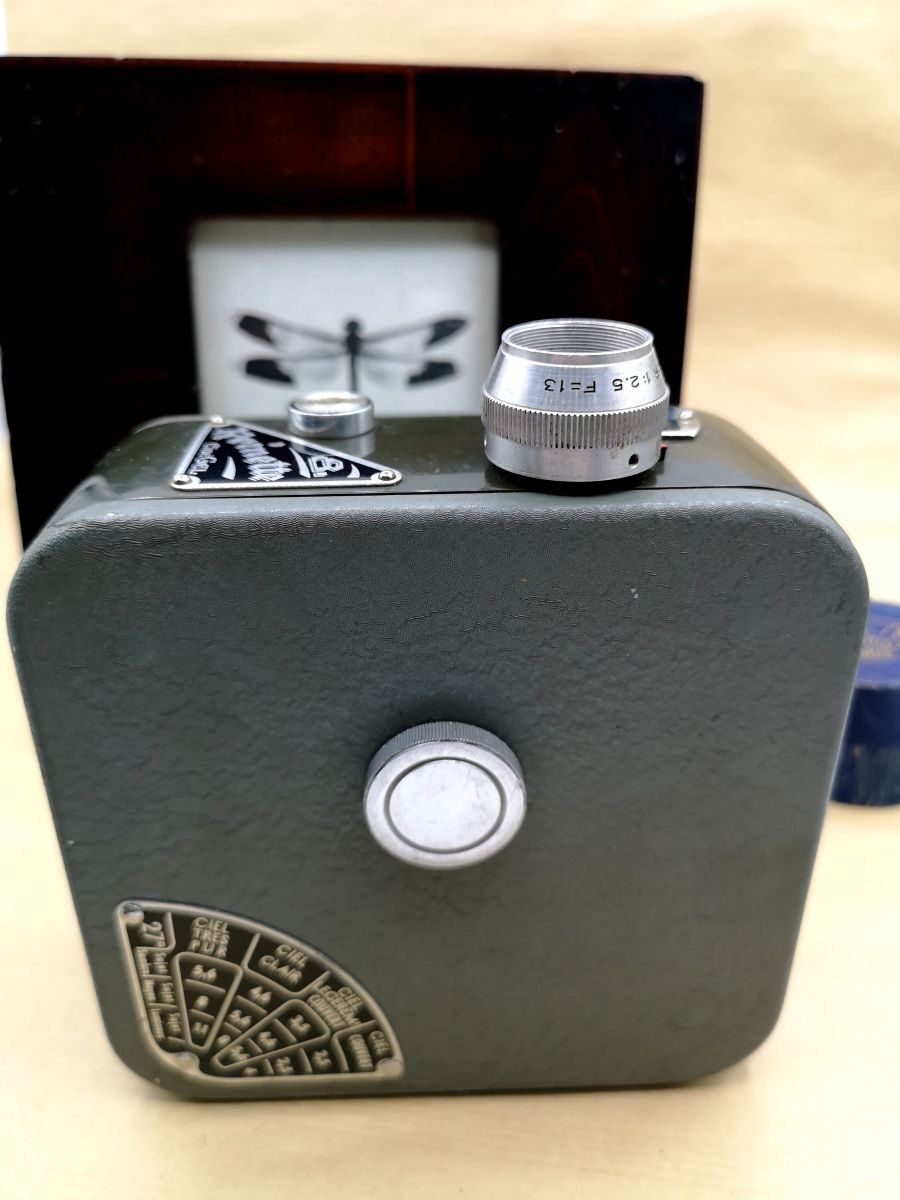 Cette caméra très simple et dépouillée est équipée d’un viseur de Galilée avec un objectif à vis non standard Roussel Kinor f/2,5 de 12,5mm à mise au point fixe.