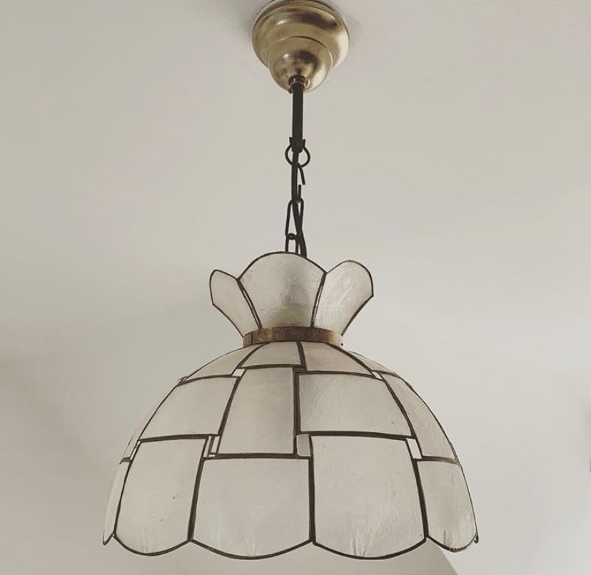 Jolie suspension en nacre et laiton d un diamètre de 27cm en bel état.
